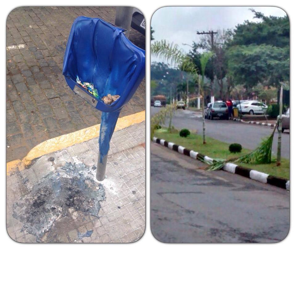 Um homem depredou, na madrugada desta segunda-feira, 2 de junho, um dos jardins centrais da Avenida Felipe Elias Zeitune, entre as secretarias de Saúde e Educação da Prefeitura de Guaxupé. O ato, segundo consta, teria ocorrido durante as festividades do aniversário do Município, tendo hoje de manhã várias mudas de palmeiras e uma lixeira sido danificadas. O assessor de comunicação da municipalidade, Paulo Rogério Leite Ribeiro, divulgou, pelo Facebook, seu repúdio para com o vandalismo, quando chamou a atenção para a falta de consciência do autor dos fatos: “Esse foi o ‘presente’ que alguém resolveu dar a Guaxupé durante as comemorações dos 102 anos da cidade! Lamentável que ainda existam pessoas assim. Talvez, ela não saiba que essa lixeira que foi queimada e as 08 palmeiras quebradas foram comprados com o dinheiro dele. Alias, não só com o dinheiro dele, mas o meu e o seu que está lendo!! Fica aqui o meu repúdio a este ser que covardemente, enquanto milhares de pessoas curtiam a festa, aproveitou para danificar o que é do povo”, publicou Paulo.