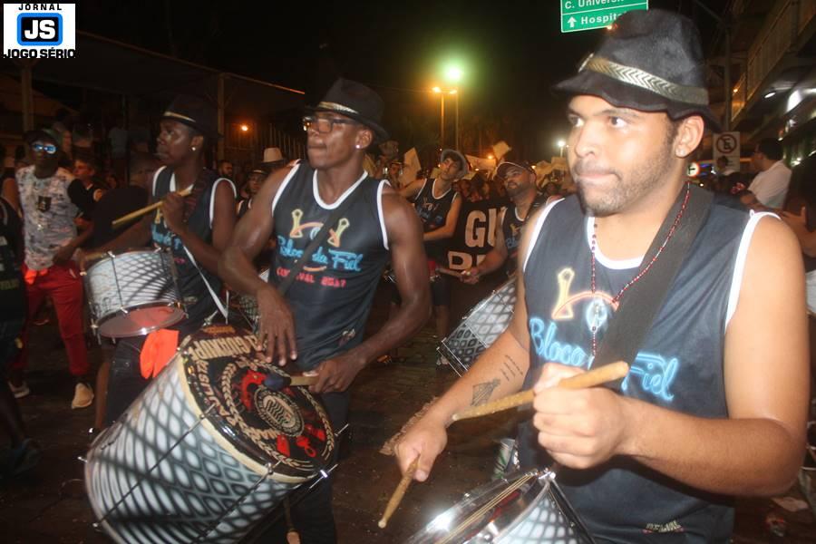O bloco Fiel Guaxupé encerrou os desfiles carnavalescos desta segunda-feira, 27 de fevereiro, em Guaxupé. Conforme sua estreia na “Festa de Momo” deste ano, ocorrida na noite de sábado último, a agremiação esbanjou energia no sambódromo, com as cores alvinegras e o amor pelo Sport Club Corinthians Paulista. Comandado pelo presidente Vítor Machuca, o “bando de loucos” comemorou o bicampeonato mundial, tendo a passagem pela Avenida arrancado aplausos calorosos da plateia. Antes da “Fiel”, desfilaram também o “Bloco do Espaço”, “Vagalumes do Luar”, “Unidos do Bengala” e “Mió qui nóis só Nóis”. Neste momento (agora é meia-noite e cinquenta desta terça, 28), o grupo guaxupeano “Tô q Tô” realiza sua apresentação no palco principal, com pagode e samba para o grande público. Carismáticos, os músicos estão sendo muito bem recebidos pelos presentes, os quais deixam-se embalar pelas interpretações e toda a produção do show. Depois do conjunto da cidade, o grupo “Homem de Lata”, do Estado de São Paulo, exibe espetáculo no “Carnaval Guaxupé 2017 – cem anos de samba”. A festança será encerrada com a programação de terça-feira, a partir das 16h, no Coreto Kaled Kuri, com matinê (marchinhas da Corporação Musical Santa Bárbara, de Guaranésia e recreações do grupo teatral Tramas & Dramas). Às 18h30 acontece o “Palco do Samba” e a Lambaeróbica do Espaço, sendo que os desfiles finais estão previstos para às 20h, com Fênix, Feijão Queimado e Portal de Minas. DJ Elizei e Lucas Félix concluem a madrugada de atrativos culturais, os quais foram organizados pela Secretaria Municipal de Cultura, Esporte e Turismo, com o objetivo de viabilizar evento de qualidade, com valorização a artistas regionais, respeito ao dinheiro público e busca por segurança adequada.