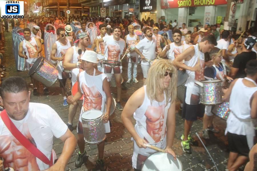 O último dia de desfile dos blocos e escolas de samba participantes do “Carnaval Guaxupé 2017” ocorre neste exato momento (agora são 22h15 desta terça-feira, 28 de fevereiro), no sambódromo armado na Avenida Conde Ribeiro do Valle, onde um público expressivo assiste à passagem das agremiações. Presente ao local, o Jornal JOGO SÉRIO divulga, nesta matéria, imagens da “Banda Feijão Queimado”, apontada pelos foliões como uma das mais criativas, com sua irreverência, a qualidade da bateria o amor de seus componentes pelo samba. – Antes, o bloco Fênix desfilou e, daqui a pouco, a escola de samba Portal de Minas conclui os desfiles, os quais desde o último sábado, 25, contaram também com as participações do Bloco do Espaço, os Vagalumes do Luar, Unidos do Bengala, Mió qui nóis só Nóis e Fiel Guaxupé. – Ainda para a noite de hoje, no palco principal, a Festa de Momo destacará as apresentações do DJ Elizei e o cantor Lucas Félix. – Vale lembrar que nesta tarde crianças e adultos divertiram-se na matinê, com marchinhas tocadas pela Corporação Musical Santa Bárbara e interatividades com o Grupo Teatral Trama & Dramas. – Com cobertura praticamente em tempo real, o Jornal JOGO SÉRIO mantém o ícone CARNAVAL na página principal do site WWW.jornaljogoserio.com.br, com uma série de matérias sobre a festança, em textos, fotos e vídeos.