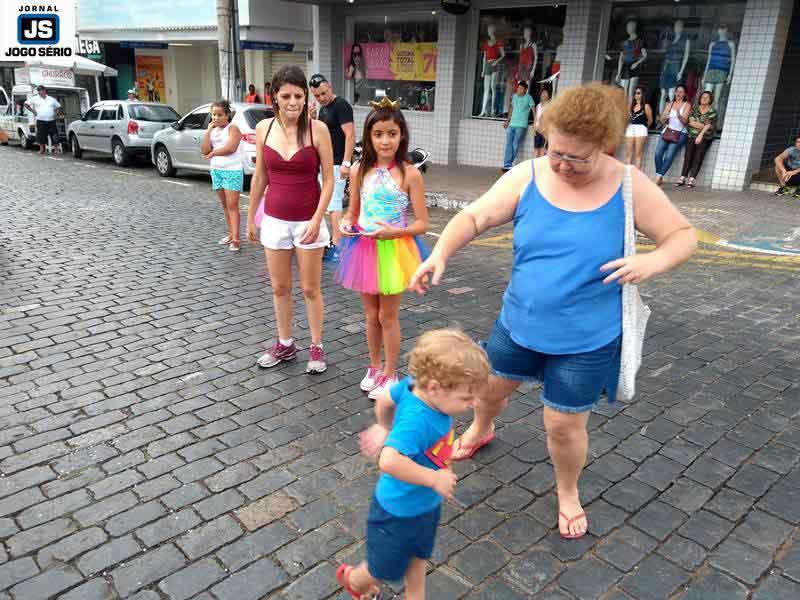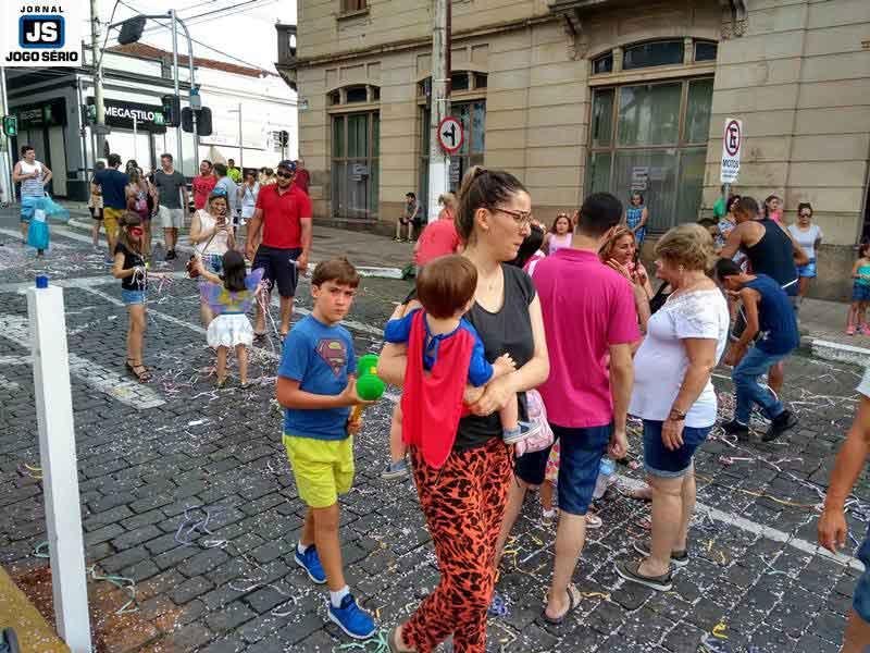 A comemoração começou no Coreto Kaled Cury, onde a “Corporação” interpretou marchinhas e “hits” típicos da época. Em pouco tempo, crianças e adultos coloriram os jardins centrais da Avenida com suas fantasias, lantejoulas, confetes, espuminhas e muita animação: “Eu trago as crianças todos os anos, pois mostrar a cultura sadia é nossa obrigação, enquanto adultos”, disse a dona de casa Ana Maria Silva, do Jardim Agenor de Lima. “Sem dúvida, este ano está muito melhor, pois tanto durante o dia quanto à noite podemos passear com as crianças sem medo daqueles foliões que, geralmente, só querem bagunça e bebedeira”, complementou o motorista Antônio Carlos, da área central, enquanto “puxava a fila” de dois netos e os amiguinhos deles.