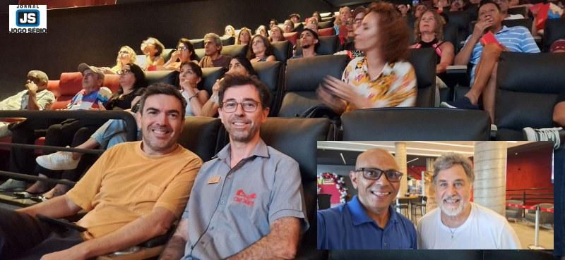 Manevy e Frota foram recepcionados no final da tarde de ontem, mas antes conheceram as novas instalações do Cine 14 Bis: "Guaxupé tem nomes importantes, a começar com Dom Inácio, o Olavo Barbosa, Dr. Isaac, mas agora Guaxupé começará a falar do Mauri Palos, pois o que ele tem feito é de história. O grande homenageado da noite é ele, pois muita coisa boa acontecerá nessas três salas do novo Cine 14 Bis", dissse Marcos. "Esse cinema é um presente para Guaxupé e o Brasil, com nível internacional. Por isso, estrear meu filme aqui, onde há fãs de Lupicínio Rodrigues, é uma honra imensa. Tenho certeza de que o novo Cine 14 Bis vai gerar desenvolvimento cultural, econômico a essa cidade linda, que vai se valorizar, pois onde há cultura, há desenvolvimento", relatou Manevy.