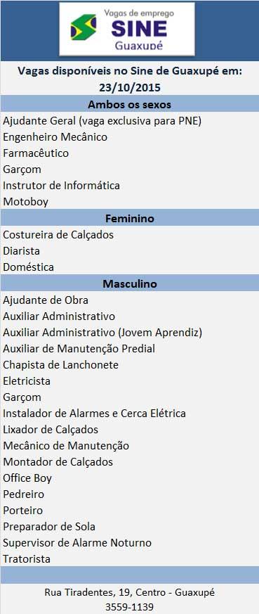 Vejas as vegas disponíveis no SINE de Guaxupé