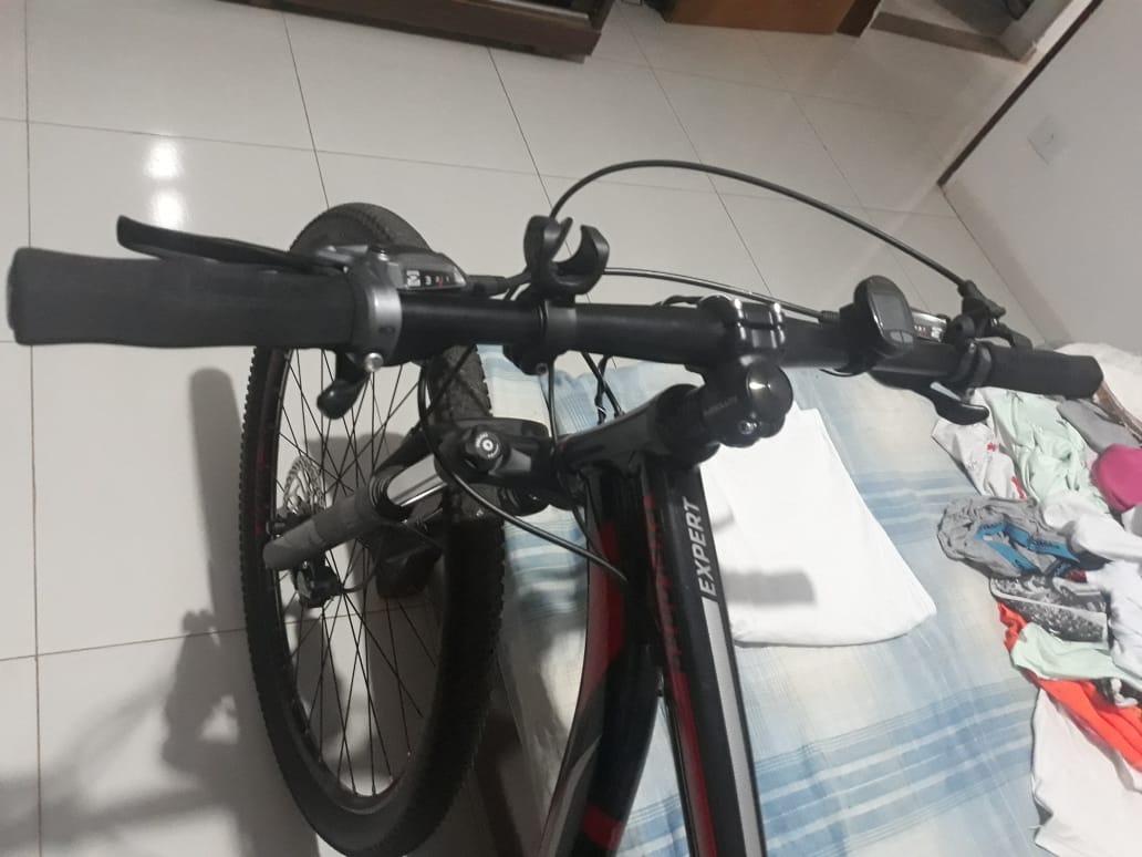 Vende-se uma bicicleta preta, da marca Caloi Explorer Expert Kit Alívio, ano 2019, em pefeitas condições de uso. Interessados devem entrar em contato pelo whats app 35) 9-8821-9261.