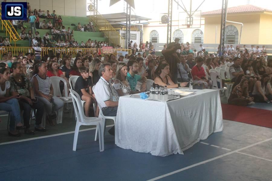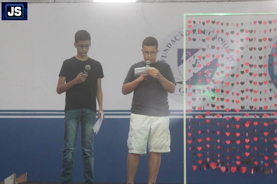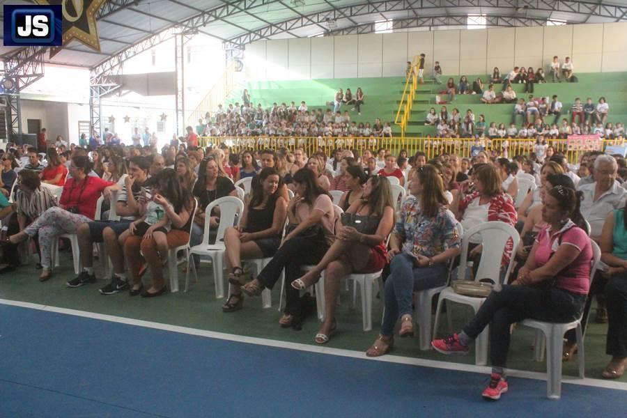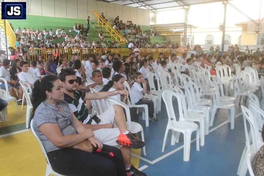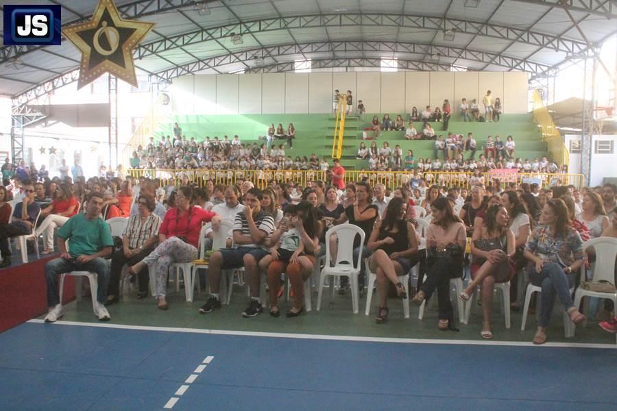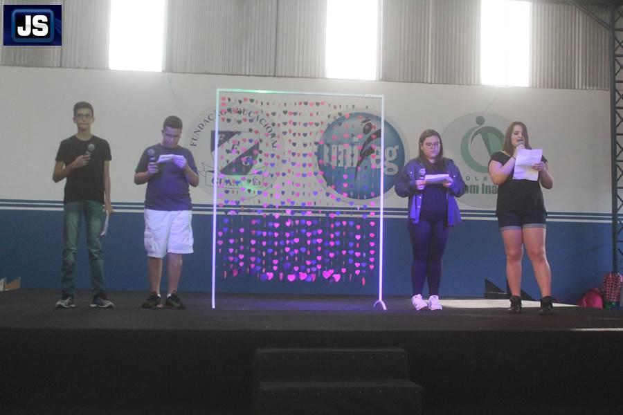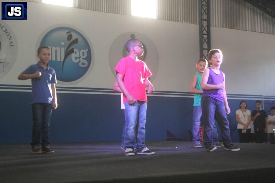 Alunos de diferentes séries do Colégio Dom Inácio de Guaxupé (das unidades I e II) participaram, nesta quarta-feira, 28 de setembro, do "1º Show de Talentos" promovido pela escola. Realizado com o objetivo de fomentar a arte entre os estudantes, o evento contou com a participação de aproximadamente cento e cinquenta pessoas, entre crianças, pré-adolescentes e adultos. Mais do que isto, a iniciativa reuniu famílias inteiras, tendo comprovado o potencial artístico de muita gente. O "1º Show de Talentos" do D. Inácio foi composto por exibições musicais, de dança, recitação de poemas, apresentações teatrais, exposição de telas e desenhos, em geral. Num ambiente todo decorado, com cenário adequado para peças artísticas de porte profissional, os artistas fizeram bonito: "Não será mais uma apresentação. Para nós, representa grandes aprendizagens e oportunidade para fazer a diferença na vida de cada um, utilizando linguagens e comunicando ideias, sentimentos e valores humanos. Enxergamos grandes amizades, descobertas, superação e a expressão mais pura de um artista, como aquele que cultiva sua emoção e que percebe o mundo com sua alma", comentou a diretora do Colégio, Juliana Costa Magalhães. (Fotos: Waddy Carneiro ? Jornal JOGO SÉRIO)