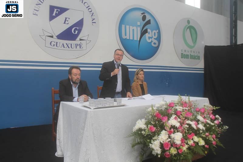 Já com relação ao evento, ocorrido no Complexo Poliesportivo Dr. Mário Dallora, o palestrante César Nunes dividiu mesa diretora com o reitor Arthus e a diretora do D. Inácio, professora Juliana Costa (também estiveram presentes os pró-reitores Antônio Carlos Pereira – Tataio e André Luiz Melo (administrativo e de recursos humanos). Os anfitriões, no início, destacaram suas ações em favor das crianças do Colégio, além das partes econômica e educacional da escola. Depois, enalteceram a presença de Nunes a mais uma realização do Unifeg/D.Inácio. Arthus, diga-se de passagem, dividiu com o público o processo de implantação do curso de Psicologia e divulgou números impressionantes, a respeito da saúde financeira das escolas da Fundação.