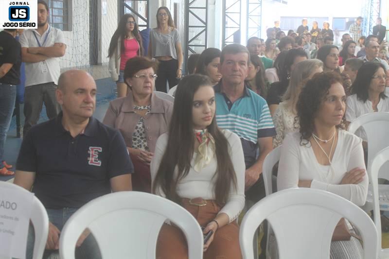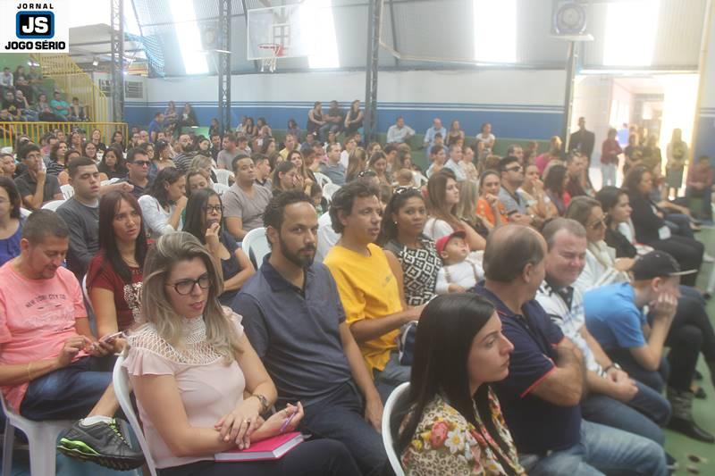 Quanto à palestra, professor César Nunes falou por pouco mais de uma hora com os pais e familiares dos alunos. O tempo todo, ele utilizou de ciências, mas principalmente vivência e humanização para comunicar-se: “Estamos num dos mais sagrados templos, que é a escola, diante da mais bendita instituição, que é a família. E devemos, portanto, estar sempre atentos às coisas realmente importantes na vida, pois a ciência se busca na escola e o amor, a convivência sadia, o crescimento afetuoso encontra-se na família”, comentou o especialista, que exibiu vasto conhecimento, oratória e grandeza. Por outro lado, falou com franqueza e simplicidade ao público, que o aplaudiu de pé, ao final da explanação. – VEJA, posteriormente, entrevistas de autoridades e visitantes, presentes neste evento.