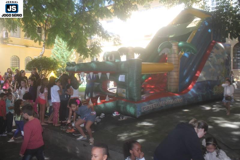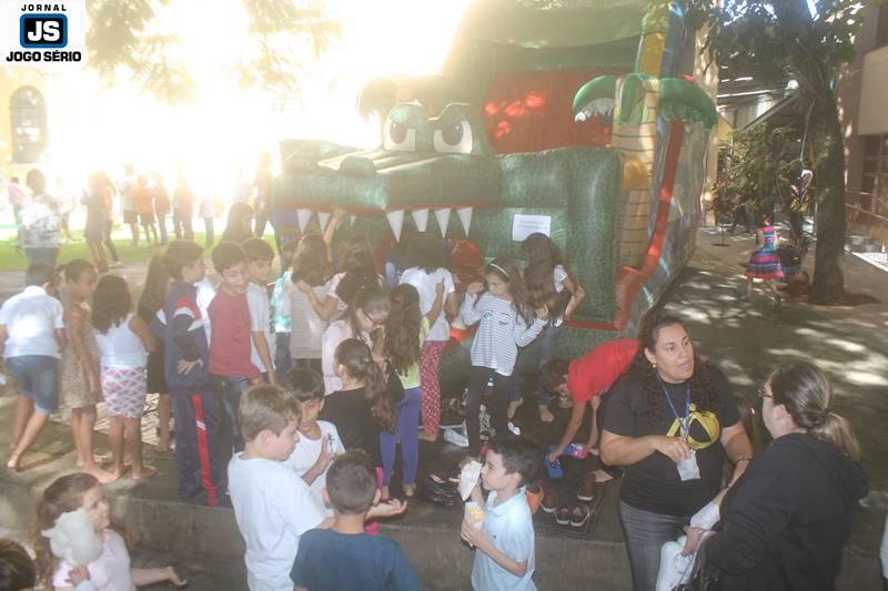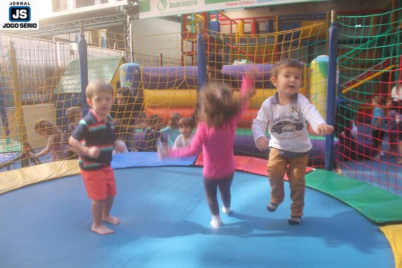 PARA AS CRIANÇAS: Enquanto os pais e familiares dos alunos assistiam à palestra, no poliesportivo, as crianças divertiam-se nos pátios da instituição. Cada qual já com suas áreas de recreação próprias, as dependências foram abrilhantadas por parque de diversões, distribuição de pipoca e algodão-doce, além de muita interatividade, sob a condução das professoras do Colégio. Ao final, cada qual presenteou sua mãe, com kits ornamentados artesanalmente pelos próprios alunos, em função do Dia das Mães, que este ano será comemorado dia 14 de maio, em todo o Brasil. – ACOMPANHE, nesta matéria, várias fotos feitas pela equipe do Jornal JOGO SÉRIO, sobre o Dia da Família no Colégio Dom Inácio.