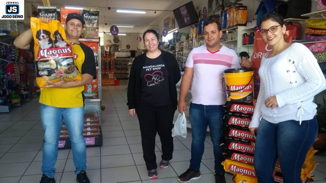 O Mangalarga Pet Shop e a Magnus realizaram, há poucos dias, uma ação de marketing em frente a loja do casal Regiane e Marcelo Martins, que fica na Avenida Dona Floriana, na área central d Guaxupé. Na ocasião, clientes foram informados sobre as vantagens de adquirir as rações de diferentes linhas, ganharam brindes e concorrem, ainda, a duas cestas com baldes e comedouros (basta localizar a transmissão ao vivo, feita pelo JOGO SÉRIO no último sábado, curtir, marcar um amigo e compartilhar).