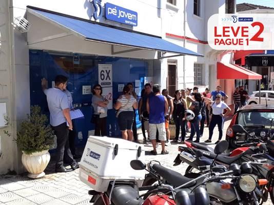 A promoção "Leve 2, Pague 1", iniciada nesta quinta-feira, 5 de março, pela Pé Jovem Calçados, está sendo reponsável por levar um público mais do que expressivo às unidades "sportshoes" e "femininos", ambas na Rua Pereira do Nascimento, nºs 90 e 97, na área central de Guaxupé.