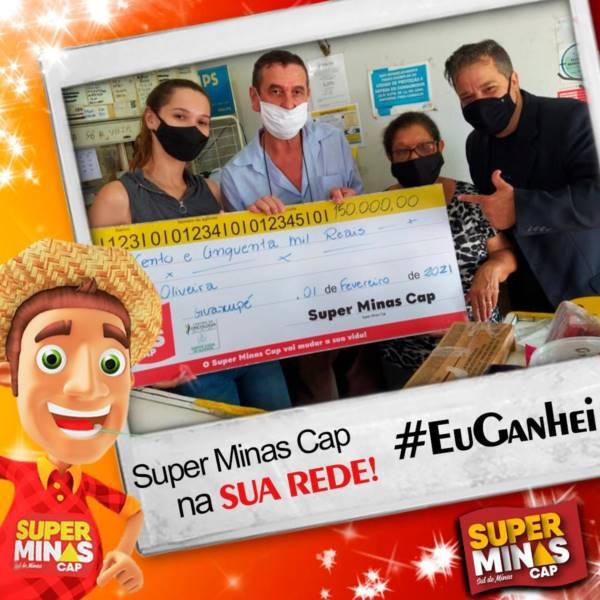 Com sorteios semanais (sempre aos domingos), o Super Minas Cap sorteará, neste dia 7 de fevereiro, mais uma série de prêmios. Entre eles: uma motocicleta Honda Pop, um Fiat Mobi Easy, um Jeep Renegade STD 1.8 4x2 flex 16v, uma Fiat Toro Endurance 1.8 16v flex e uma Volkswagen Amarok SE CD 2.0 16v TDI 4x4 diesel. Isto, além de mais trinta prêmios do chamado "Gira Minas", cada um no valor de R$ 1 mil. CLIQUE AQUI e saiba mais sobre tudo de bom que o Super Minas Cap poderá fazer por você e toda a sua família, em Guaxupé e região.