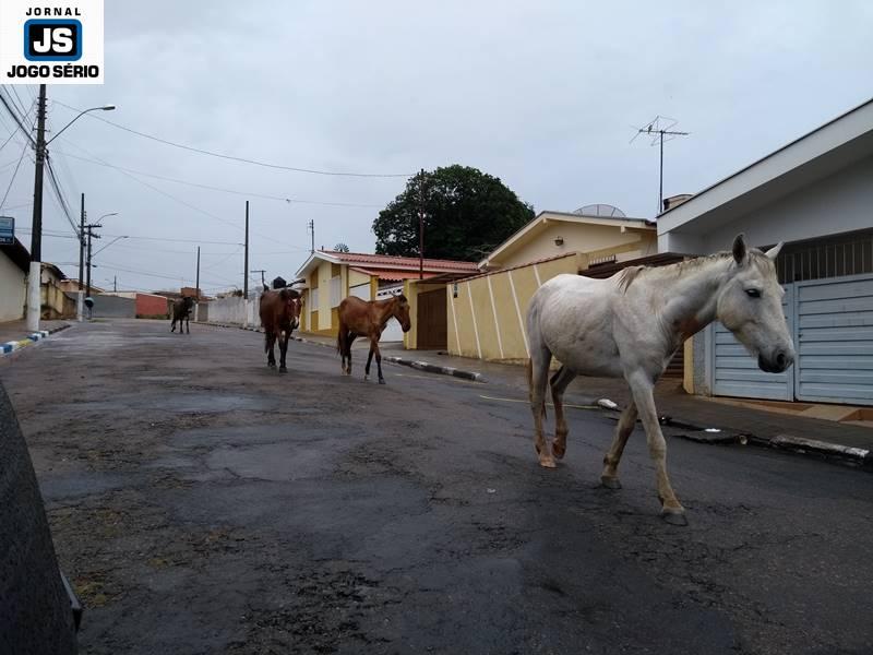 Equinos circulavam tranquilamente pela Rua Calixto José de Carvalho, entre a área central e o Parque das Orquídeas, em Guaxupé, nesta tarde de segunda-feira, 18 de setembro. Os animais dividiam as vias públicas com veículos e colocavam em risco a segurança de condutores de motocicletas e automóveis. Mais do que isto, causaram a reprovação de cidadãos, que cobraram uma postura mais rígida por parte do poder público municipal, no sentido de coibir este tipo de cena. Situação habitual nos trevos de acesso à cidade, além de bairros manos movimentados, o episódio chamou a atenção por ter ocorrido em área de grande movimentação de pessoas e veículos. No passado, a Prefeitura mantinha o Curral do Conselho, onde animais soltos eram apreendidos e leiloados, caso seus donos não se manifestassem. Na atualidade, o Município firmou convênio com terceirizados, responsáveis pela captura, mas o serviço, segundo consta, não está mais sendo realizado.