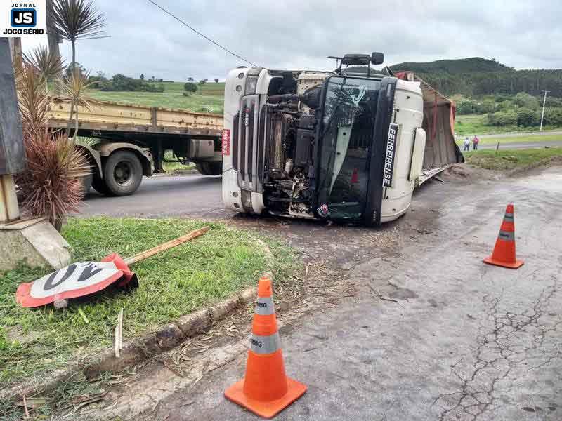 O veículo pesado, que trafegava de Guaranésia para Guaxupé, carregava fertilizantes, numa viagem iniciada em Santos, no interior de São Paulo, com destino à Cooxupé, onde descarregaria. Porém, ao adentrar o trevo, o motorista não teria se atentado à importância de diminuir a velocidade, tendo perdido o controle direcional. Como consequência, o veículo teve sua cabine e parte da carroceria tombada.