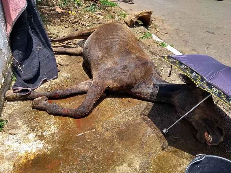 A equina foi encontrada por populares, que a avistaram em apuros, já dentro do buraco, tendo eles se apiedado com sua situação e retirado-lhe para uma calçada, quando perceberam a quantidade de ferimentos em várias partes do corpo dela. Acionada, a direção da APA compareceu ao local e tomou as seguintes providências: acionou a PM e a Prefeitura, além de um veterinário. No local, os militares auxiliam nos trabalhos, enquanto o profissional está sendo aguardado, já que por parte da municipalidade foi informado de que não há o que fazer. “A Associação assumirá as despesas que tivermos com o socorro do veterinário”, informou ela, cuja entidade está entre as mais sérias da cidade, no tocante a cuidados para com animais.