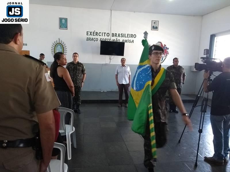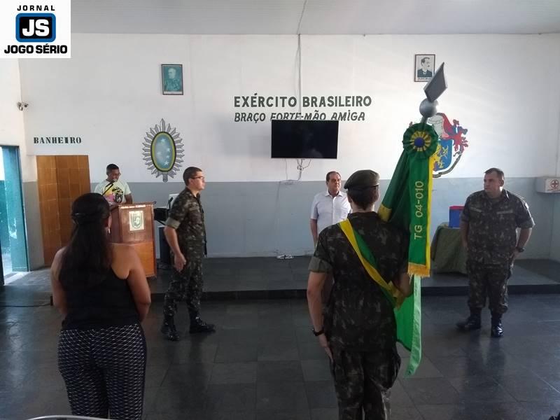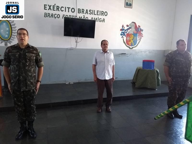 Autoridades civis e militares participaram, nesta manhã de terça-feira, 18 de dezembro, da cerimônia de passagem de comando no Tiro de Guerra de Guaxupé. Há dois anos sob a instrução do sargento Marco Antônio Sotoriva, a referida corporação passará, agora, a cargo do também sargento, Alex Sandro Santoro. Natural de Vacaria, no Rio Grande do Sul, o ainda comandante do “TG 04010” dará continuidade à carreira, na cidade de Marabá, que fica no Pará. Já o substituto, que nasceu em São Paulo, mas cresceu no município guaxupeano, onde viveu até iniciar-se no Exército Brasileiro, retorna à “terra natal”, a fim de realizar um trabalho que lhe proporcione satisfações pessoal, profissional e social.