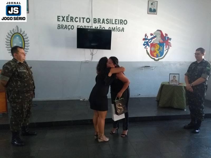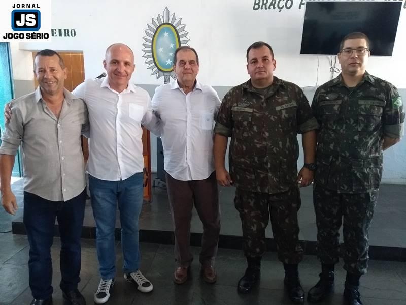 Também o vice-prefeito e o presidente do Guaxu Nascentes usaram da palavra para externar a importância do momento: “Não é segredo para ninguém o valor que dou ao serviço militar, pois ele traduz disciplina, honraria e trabalho. Tenho o sonho de revitalizar este prédio e sei que isto será feito pelo Jarbinhas”, informou dr. Heber. “Sargento Sotoriva deixará muita saudade, pois desenvolvemos muitos trabalhos juntos. Que eles continuem, com o novo sargento, que é gente nossa e somará muito”, ressaltou Luciano Reis, que presenteou o sargento em final de expediente com um certificado do Guaxu Nascentes. Antes do final, as esposas dos respectivos sargentos, Simone (mulher de Sotoriva) e Liliane (esposa de Santoro), trocaram presentes e homenagens.