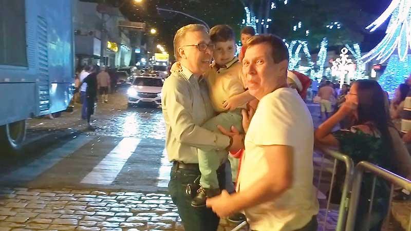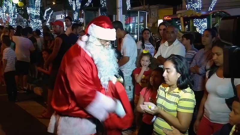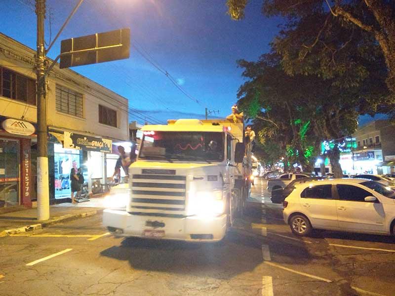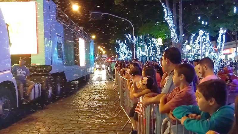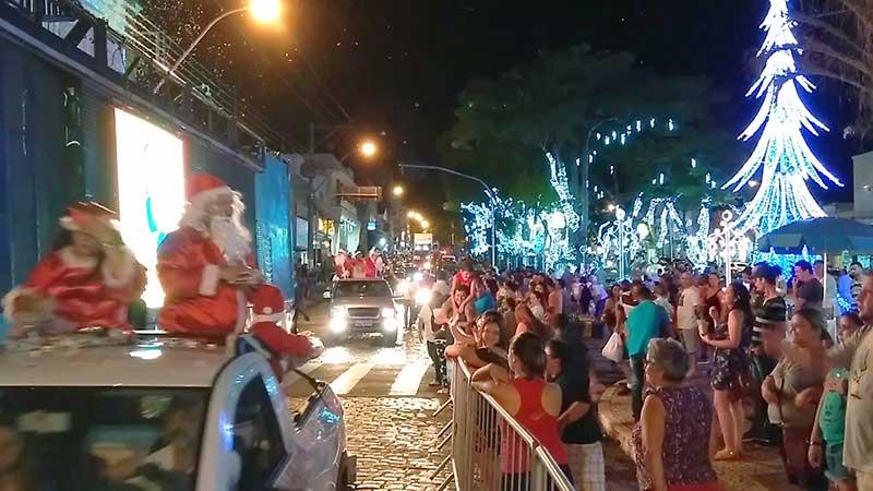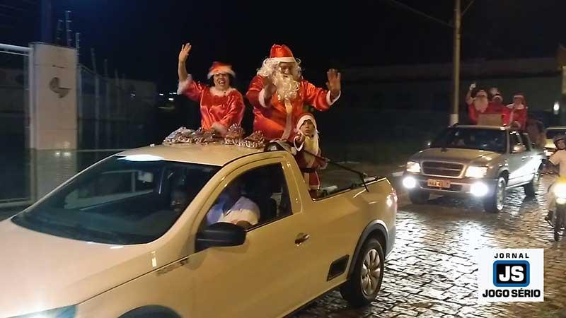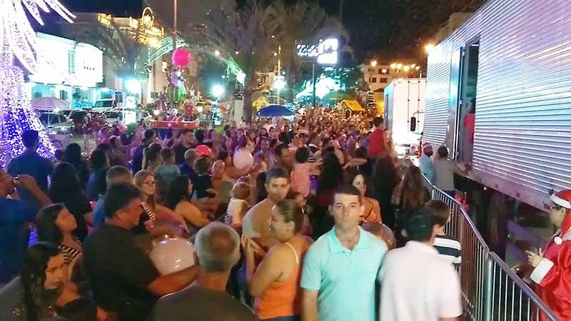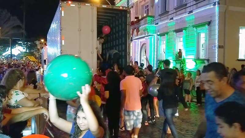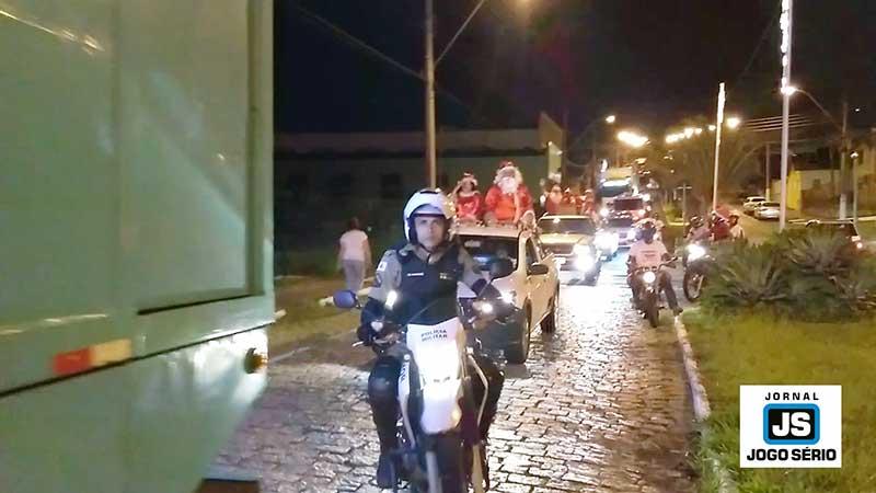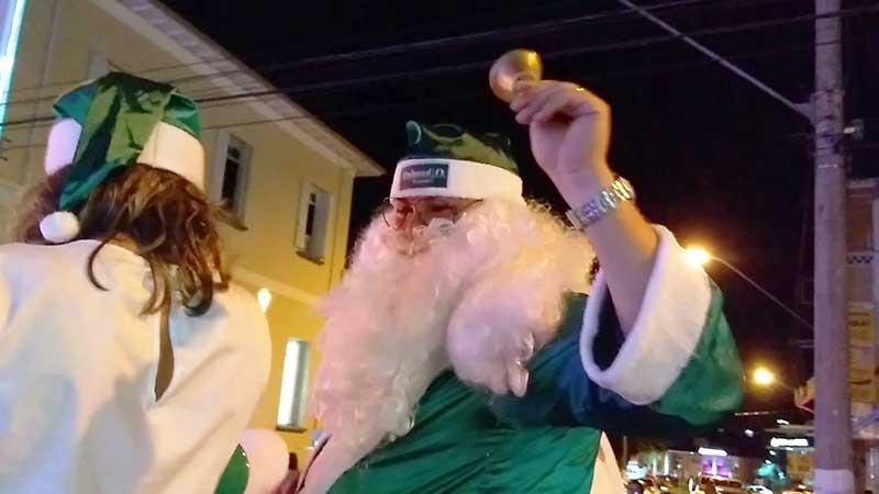 Um extenso grupo de voluntários em Guaxupé participou, nesta tarde de quarta-feira, 19 de dezembro, da distribuição de doze mil e trezentas bolas infantis e mil quilos de balas, numa ação filantrópica que já dura alguns anos e mobiliza doadores de dentro e fora da cidade. A iniciativa, que habitualmente atrai multidões entre crianças e adultos, mais uma vez percorreu boa parte da cidade, tendo confirmado a generosidade dos organizadores. A reunião contou com um comboio de quinze veículos pesados, entre caminhões e carretas, além de automóveis e motocicletas. Abastecidos com os presentes (bolas e balas), eles formaram uma longa fila, sendo que desde o ponto de partida, vários “Papais-noeis”, seus ajudantes e outros personagens alegraram as pessoas por onde o grupo passava. Ao som de trio-elétrico, o passeio contagiava a quem quer se fosse, pelas ruas e avenidas de Guaxupé. “Todos os anos a gente espera por este momento. É muito gostoso ver o quanto as pessoas se sensibilizam com o Natal”, disse a dona de casa Andreia Silva, do Parque dos Municípios I, um dos locais de maior concentração de crianças, à espera dos presentes. Com empresas privadas, instituições, entidades de classes e representantes de vários segmentos, a carreata natalina transcorreu em clima de paz e doação.
