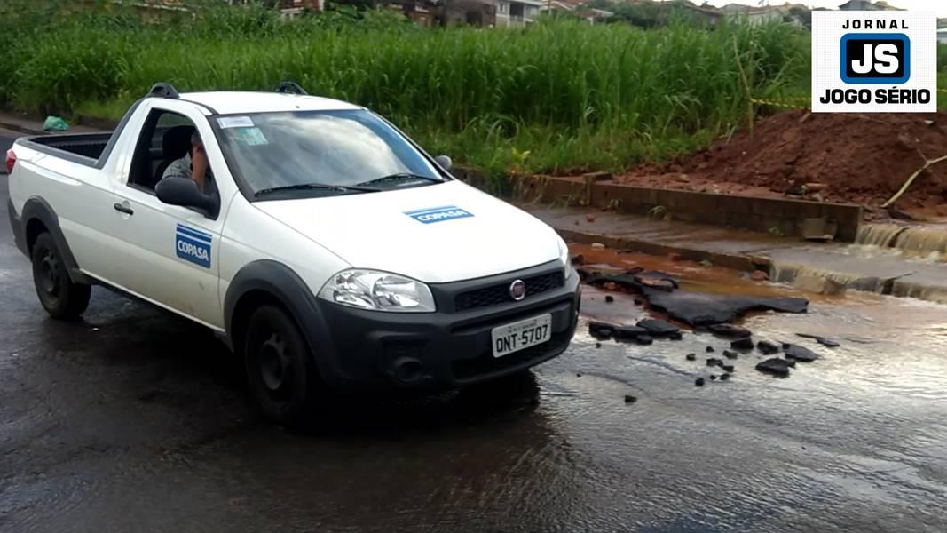 O Jornal JOGO SÉRIO aguardou a presença de representantes da Copasa, a fim de esclarecer o motivo pelo qual a água teria sido represada em obra possivelmente feita pela empresa. Em nome da estatal, o encarregado José Arquimedes explicou: “Isto aí é mais em função das chuvas mesmo, com a galeria entupida e isto acontece... muita chuva, com a quantidade de enchentes que tem, elas vão... a enchente desce e a pressão da água desfaz o calçamento das ruas. Isto não é a primeira vez que acontece! Na verdade, pode ser que a galeria esteja entupida, pois teremos de abrir para ver. Mas, o setor de Obras da Prefeitura é que vai cuidar disto aí. Foi aberto (o buraco) e viu-se que a galeria está meio dificultando a passagem da água”, limitou-se o funcionário, que esteve acompanhado por diretores regionais da Copasa no local.