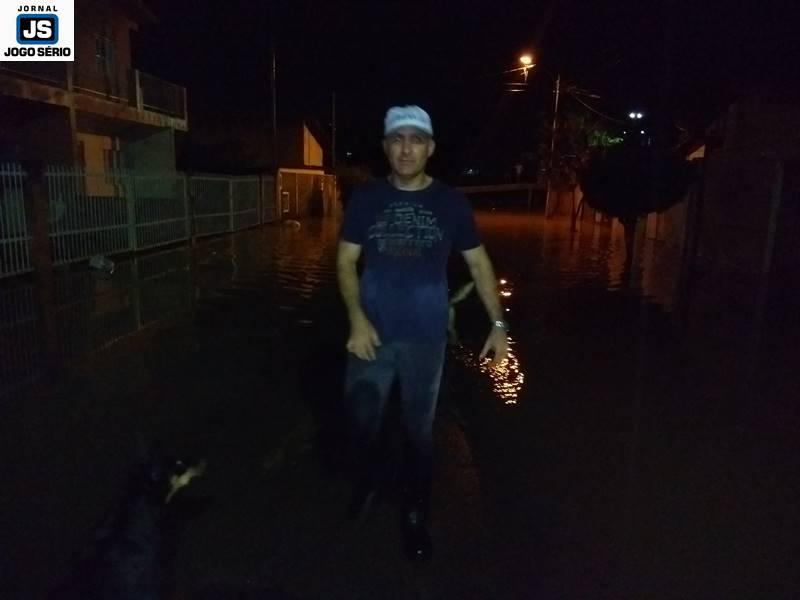 Já exclusivamente com relação à Vila Progresso, doze famílias foram retiradas de suas residências, haja vista o risco de inundação, uma vez que a água do Rio Guaxupé transbordou e alcançou a Avenida Brasil, além de parte das ruas Chile e Paraguai. “O pessoal foi levado para casas de parentes, embora o Município tenha disponibilizado a Escola Municipal Professor José de Sá. O problema é que os próprios moradores se mostram um pouco arredios por deixarem suas casas sozinhas e insistem em ficar”, comentou o coordenador da Defesa Civil, Edson Kilian Bitencourt (Sargento), o qual trabalha com uma das equipes destacada para o atendimento domiciliar. “Graças a Deus, a água já está retornando para a calha do Rio, sendo que os moradores poderão retornar em breve”, continuou o secretário de Governo e Planejamento, Artur Fernandes Gonçalves Filho, o qual liderou uma das equipes de monitoramento aos pontos vulneráveis. Ainda sobre a chuva desta tarde, ainda não há informações precisas, mas sabe-se que o volume de água foi superior ao esperado para o período. – Veja, logo mais, outras informações sobre este tema.