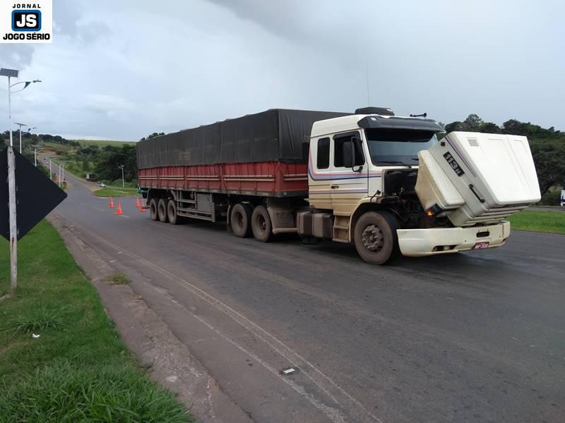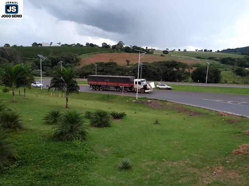 Mais uma carreta quebrou no trevo de acesso ao Pólo Industrial, em Guaxupé