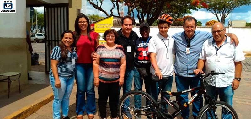 O estudante Maicon Douglas, de 16 anos, que foi vítima de acidente no último dia 22, na Avenida Presidente Tancredo Neves, entre o Jardim América e o Residencial Monte Verde, em Guaxupé, teve uma agradável surpresa na tarde desta quinta-feira, 31 de outubro. Iniciante no Programa Jovem Aprendiz da Prefeitura, ele ganhou uma bicicleta nova de presente, numa oferta de voluntários que se sensibilizaram com a história de luta e humildade do menino.
