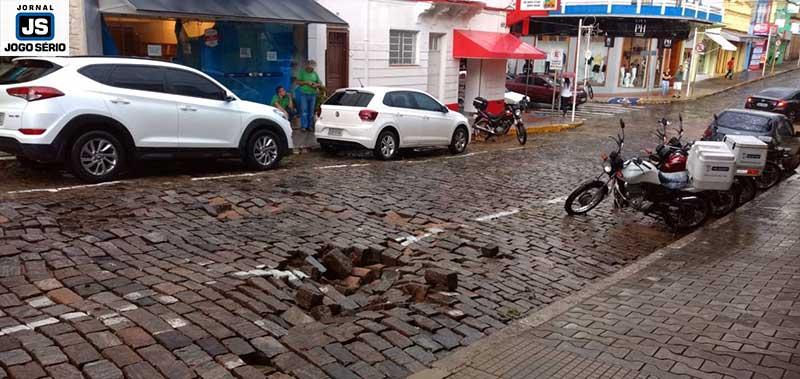 Na rua vizinha, Pereira do Nascimento, parte das pedras que calçam a via soltou-se e, noutro ponto, afundou o solo (problema já corriqueiro, sempre quando chove muito forte). No local, veículos chegaram a ser arrastados pela força da água. Neste momento, no local (agora são 17h), agentes da DIMUTRAN e funcionários do setor de Obras da Prefeitura realizam uma sinalização emergencial, com vistas a evitar acidentes de trânsito. De acordo com funcionários, o reparo do calçamento ocorrerá tão logo a chuva amenize (na Avenida Dr. João Carlos, também naquelas proximidades, o chão também foi abaixo há dois dias, numa ruptura que gerou a interdição parcial da rua, para obras).