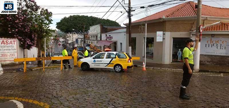 A forte tempestade que caiu sobre Guaxupé nesta tarde de segunda-feira, 13 de janeiro, provocou estragos em diferentes pontos da cidade, com inundações, ruptura de calçamentos, queda de galhos, muros e outros problemas. Já nas ruas, especialistas do 4º Pelotão do Corpo de Bombeiros, além de agentes da Defesa Civil, Divisão Municipal de Trânsito e da Secretaria de Obras trabalham para restaurar as áreas danificadas. Entre comerciantes e donos de imóveis afetados, o momento também é de recuperação do susto e limpeza geral.