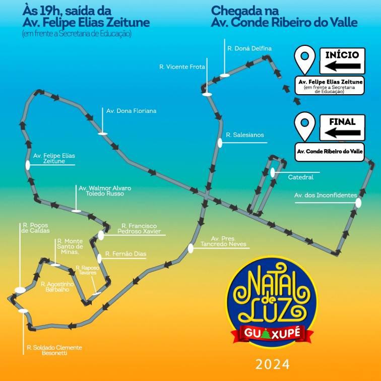 Veja aqui no JOGO SÉRIO o trajeto da carreata do Natal de Luz Guaxupé...