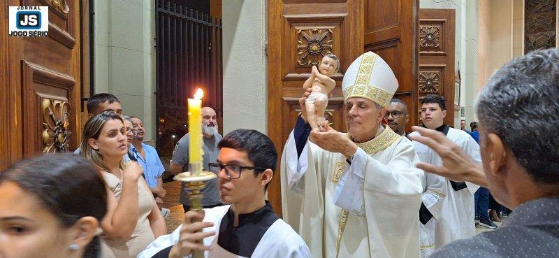 Dom Lanza emociona os fiéis ao percorrer a Igreja com a imagem do Menino Jesus