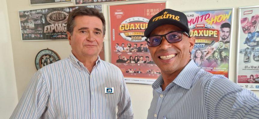 Carlão esteve com Maé na sede do Sindicato, onde o dirigente confirmou o retorno da festança: “É a volta da Expoagro! Voltamos realmente com tudo, muita capacidade, experiência, resgatando tradição, a história do evento e muita tecnologia. Estamos numa nova época, novo modelo de mundo, onde a inteligência artificial veio para coroar os eventos, a vida do ser humano e, com certeza, a Expoagro, dessa forma, encampará toda essa tecnologia, com leds, cores, visualizações. Ontem, com o lançamento da festa, batemos todos os recordes que já tivemos e que poucas festas até hoje conseguiram, com mais de trezentas mil visualizações em menos de vinte e quatro horas, no Instagram. Para nós, isso é o reconhecimento desse evento. Com certeza, 2025 não será diferente. De agora para frente, trabalhando muito com toda a linha de shows, com nosso rodeio tricampeão do Troféu Arena de Ouro e, enfim, com a tradição que Guaxupé sempre teve. Vamos trabalhar forte e, com toda certeza, contando com o Jornal JOGO SÉRIO e esse trabalho fantástico que você sempre fez”, recepcionou Maé.