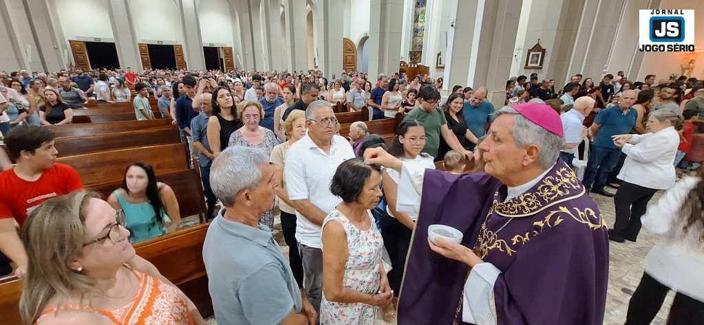 Um expressivo número de pessoas participou, nesta noite de quarta-feira, 6 de março, da Missa de Cinzas, com lançamento da Campanha da Fraternidade 2025, cujo tema é “Ecologia Integral”. Marcada pelo início da Quaresma, a celebração conclama, por mais um ano, os filhos de Deus a refletirem sobre a importância de seguirem a Jesus Cristo, numa conversão onde coisas mundanas devem ser substituídas por virtudes nobres, como a caridade, o amor, o respeito e a fé. A missa foi presidida pelo bispo, Dom José Lanza Neto, com o auxílio do padre Alexandre José Gonçalves, assim como ministros, acólitos e coroinhas. Além do ritual da imposição de cinzas, os fiéis participaram da comunhão eucarística e ouviram as palavras do líder eclesiástico, sobre mais uma oportunidade que a raça humana tem de abandonar vícios orgânicos e morais e revestir-se de uma vida nova. Além da evangelização, a Igreja pregou, na celebração de ontem, o incentivo à proteção do meio ambiente, cujo ato será debatido o ano todo pela Confederação Nacional dos Bispos do Brasil. Ainda sobre a questão ecológica, diga-se de passagem, os fiéis receberam, após a missa de ontem, na Catedral, mudas de árvores nativas, numa parceria da Paróquia Nossa Senhora das Dores com a empresa JF Pasqua, do empresário Roberto Leopoldo Pasqua (Betão). Durante os quarenta dias de reflexão e penitência, o catolicismo promoverá ações religiosas e sociais, em favor do bem coletivo. Em Guaxupé, além da Igreja Matriz, há outros templos, pertencentes às cinco paróquias locais. - CLIQUE AQUI para ver as fotos feitas pelo repórter Carlão, do Jornal JOGO SÉRIO, na celebração de ontem. - AJUDE O jornal que lhe informa a todos os momentos: faça um PIX de qualquer valor para 11.086.919/0001-66. - CLIQUE AQUI e receba os conteúdos do JOGO SÉRIO em seu whatsapp. - NESSE LINK, você passa a seguir a nova fanpage/facebook Jornal JOGO SÉRIO. - A QUALQUER instante, acesse www.jornaljogoserio.com.br e fique muito bem informado.