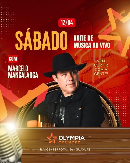 O cantor Marcelo Mangalarga será a atração principal desta noite de sábado, 12 de abril, no Olympia Country, que fica na Rua Vicente Frota, nº 136, no Jardim Angola, na cidade de Guaxupé, pertencente ao Sudoeste mineiro. Eclético e muito talentoso, o artista interpretará músicas consagradas dos cenários sertanejo e pop brasileiros. Programada para ocorrer no período noturno, a apresentação do músico atrairá um público expressivo, sendo que reservas de mesas são aceitas pelo telefone whatsapp de número (35) (35) 9-9213-0001. CLIQUE AQUI e saiba mais sobre os atrativos do Olympia Country.