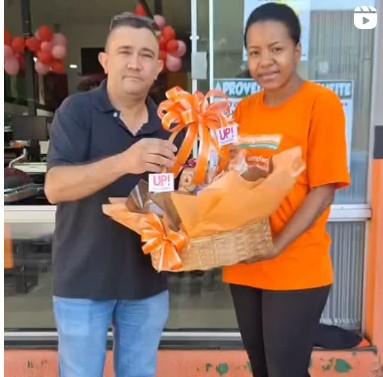 Cliente da UP MOBILIDADE URBANA fatura cesta especial em sorteio pelo "Mês das Mães"