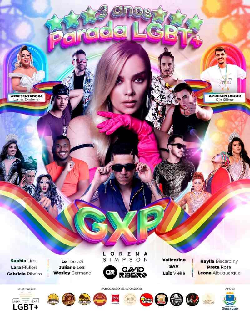 A “Parada...”, que é promovida pelo Movimento LGBT+ de Guaxupé, destacará os espetáculos de Lorena Simpson e David Ribeiro, além de apresentações de artistas locais e regionais (sob as conduções de Lanna Dvainer e Gih Oliver). “Traremos à tona a importância de valorizar as trajetórias da população LGBTQIA+, que enfrentaram décadas de exclusão e preconceito, ao mesmo tempo em que se projetam um futuro mais justo, inclusivo e representativo para todas as idades”, definiu a organização, em nota distribuída à imprensa local.