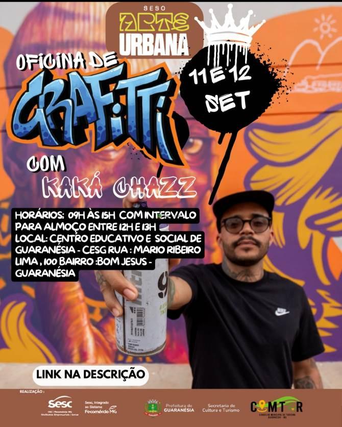 Guaranésia sediará, nos próximos dias 11 e 12, um workshop e uma roda de conversa sobre arte urbana, realizados pelo Sesc, em parceria com a Prefeitura Municipal. O evento contará com a participação do artista Kaká Chazz, referência nacional na área. As atividades serão no Centro Educativo e Social de Guaranésia (CESG), das 9h às 15h, com intervalo para almoço. A programação abordará técnicas avançadas de arte urbana, como composição, integração com o espaço urbano, uso de cores e combinações com tinta acrílica e spray. Além da prática, haverá discussões sobre processos criativos, profissionalização e a arte como ferramenta de transformação social.