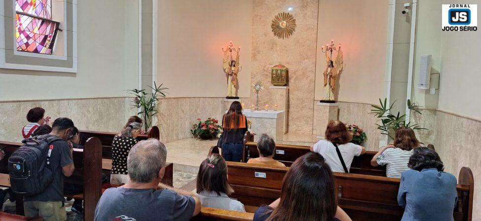 O Santíssimo Sacramento encontra-se exposto para adoração na Catedral Nossa Senhora das Dores, em Guaxupé, no Sudoeste mineiro, nesta sexta-feira, 3 de outubro. A prática católica, conforme apurado pelo Jornal JOGO SÉRIO, consta da retirada da hóstia do sacrário, para sua apresentação aos fiéis. De acordo com a programação, o público poderá fazer suas preces na presença da figura de Jesus Cristo até às 14h30 de hoje, quando haverá missas às 15h e 19 horas na Igreja Matriz. Ainda sobre o rito em questão, a simbologia ocorre sempre na primeira sexta-feira de cada mês, sendo que na manhã de hoje o padre Pedro Miguel celebrou missa e, em seguida, caminhou com o Santíssimo até o local onde ficará exposto, tendo os participantes rendido graças ao Rei da Glória. – Ainda pertencente à Diocese guaxupeana, teve início nesta noite de quinta-feira, 2 de outubro, a Novena e Festa em Louvor a Nossa Senhora Aparecida e do Rosário, com manifestações religiosas nas igrejas de Santo Antônio, do Rosário e das Graças; além de quermesse na Avenida Conde Ribeiro do Valle, com praça de alimentação, música ao vivo e muito congraçamento. - AJUDE O jornal que lhe informa a todos os momentos: faça um PIX de qualquer valor para 11.086.919/0001-66. - CLIQUE AQUI e receba os conteúdos do JOGO SÉRIO em seu whatsapp. - NESSE LINK, você passa a seguir a nova fanpage/facebook Jornal JOGO SÉRIO. - A QUALQUER instante, acesse www.jornaljogoserio.com.br e fique muito bem informado.