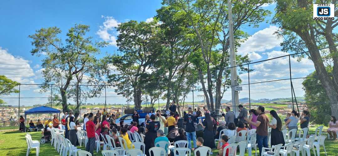 Evangélicos de diferentes igrejas encontram-se, nesta tarde de quinta-feira, 20 de novembro, no campo de futebol do Jardim Santa Cruz, em Guaxupé, no Sudoeste mineiro. Em louvores e pregações, os presentes celebram o início do projeto "Ação Missionária Cidade para Cristo". Conforme apurado pelo repórter e vereador Carlão, do Jornal JOGO SÉRIO, a iniciativa vai ao encontro do despertar das famílias para o amor, a fé em Jesus Cristo e a prática do bem. Principalmente direcionado à juventude, o culto acontece em meio ao feriado pelo Dia da Consciência Negra, quando o País recorda os séculos de escravização de africanos e nativos brasileiros e enfatiza o direito à liberdade. Programado para se estender pela tarde, o evento é aberto a todos os públicos e vai ao encontro da cultura de paz por meio da evangelização. CLIQUE AQUI e veja as fotos!