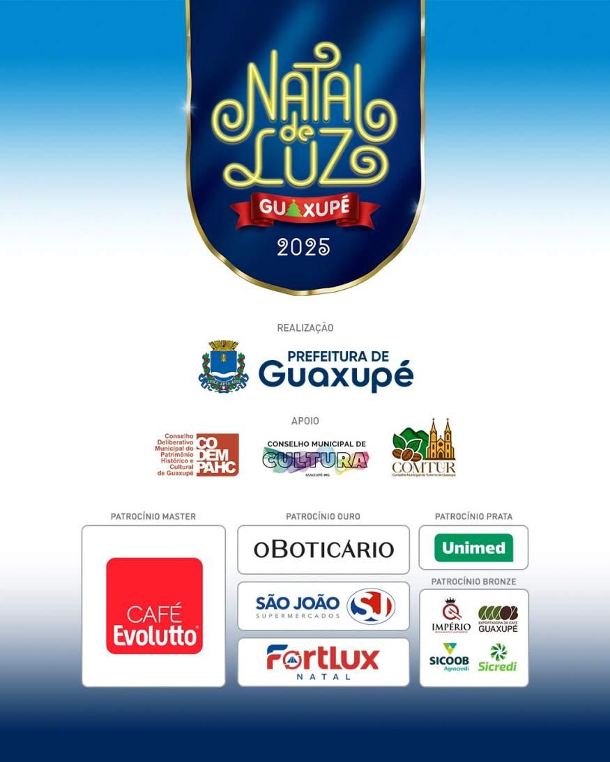 Toda essa programação é realizada pela Prefeitura de Guaxupé, com apoio de parceiros que acreditam na força da cultura, da união e da celebração natalina. Venha viver essa magia você também! -