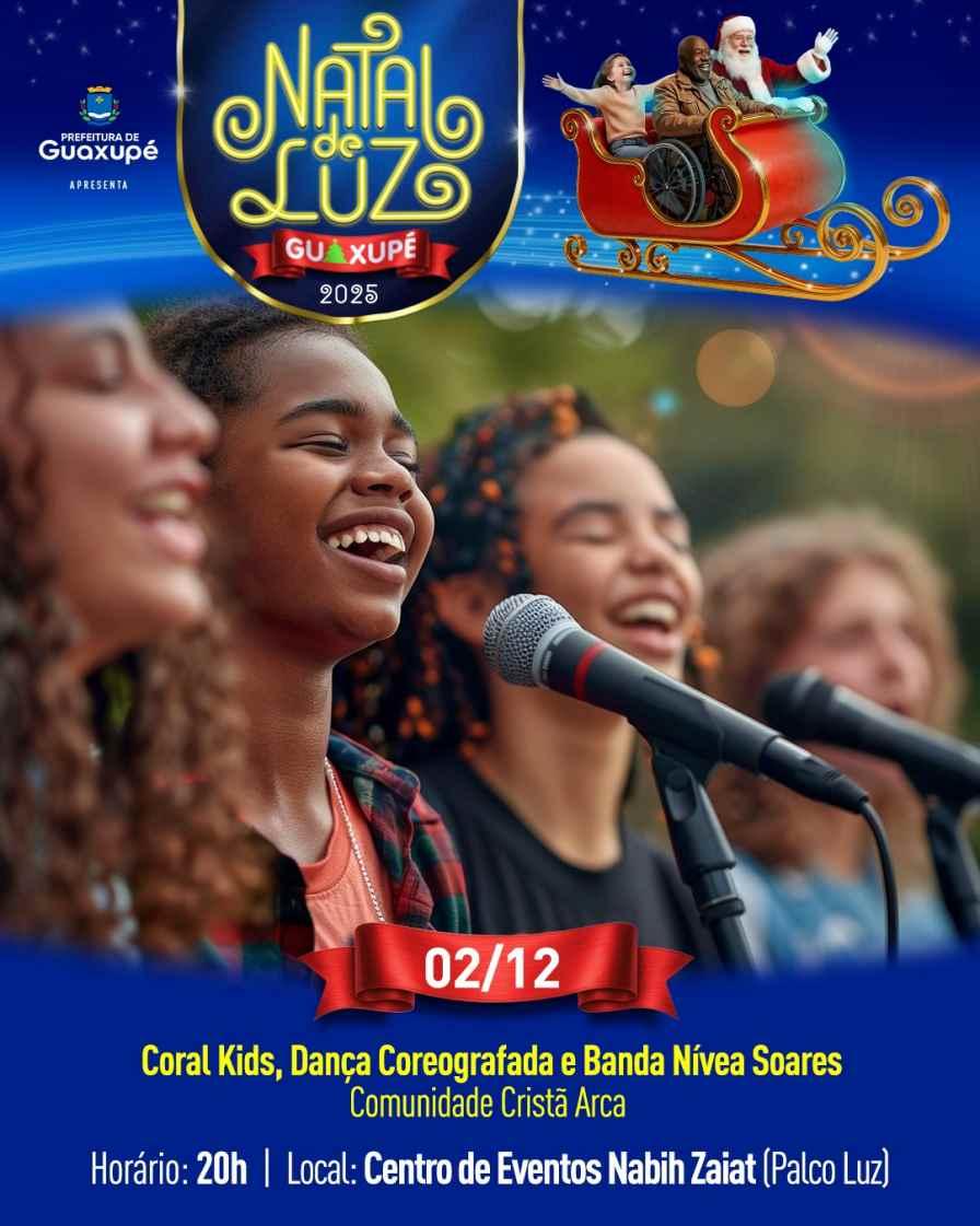 O Natal de Luz Guaxupé 2025 já começou, trazendo todo o encanto e a magia das festas de fim de ano para a cidade! A programação está recheada de música, arte, cultura, encontros emocionantes e atrações gratuitas para crianças e adultos.