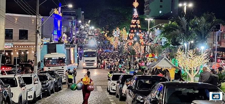 A 10ª edição do "Natal da Paz" foi realizada nesta quinta-feira, 18 de dezembro, em Guaxupé, no Sudoeste mineiro. Tradicional na distribuição de milhares de balas e bolas, a iniciativa proporcionou muita alegria a famílias de diferentes localidades. Idealizada pela direção do Grupo Condupasqua (conduzido pelo casal Marina e Giovanni Pasqua), a ação filantrópica conta com a parceria de uma série de colaboradores, assim como do poder público (via forças de segurança). Lideradas pelos trio-elétricos da Família Zaiat (Papão e Club Jr.), carretas lotadas de bolas e voluntários percorreram vários bairros e áreas centrais, em visitações sob música natalina e o desejo de que o Natal seja repleto de paz a todos os cidadãos. Atento aos principais acontecimentos da cidade e região, o repórter e vereador Carlão, do Jornal JOGO SÉRIO, registrou todo o percurso e testemunhou o sucesso de mais um ano do NATAL DA PAZ! - CLIQUE AQUI e veja fotos. - AJUDE O jornal que lhe informa a todos os momentos: faça um PIX de qualquer valor para 11.086.919/0001-66. - CLIQUE AQUI e receba os conteúdos do JOGO SÉRIO em seu whatsapp. - NESSE LINK, você passa a seguir a nova fanpage/facebook Jornal JOGO SÉRIO. - A QUALQUER instante, acesse www.jornaljogoserio.com.br e fique muito bem informado.