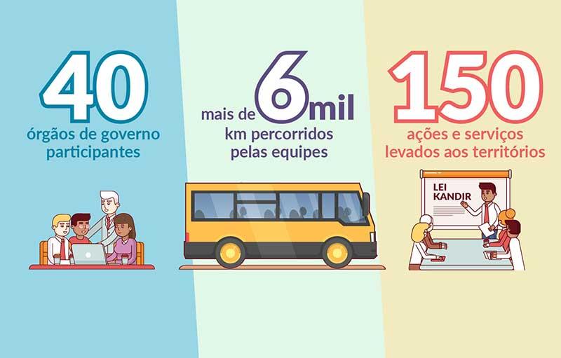 As equipes dos Fóruns Regionais de Governo e de mais de 40 órgãos públicos estaduais colocaram o pé na estrada em 2017, percorrendo mais de 6 mil quilômetros para levar cerca de 150 ações e serviços para a população dos territórios de desenvolvimento.