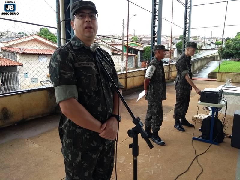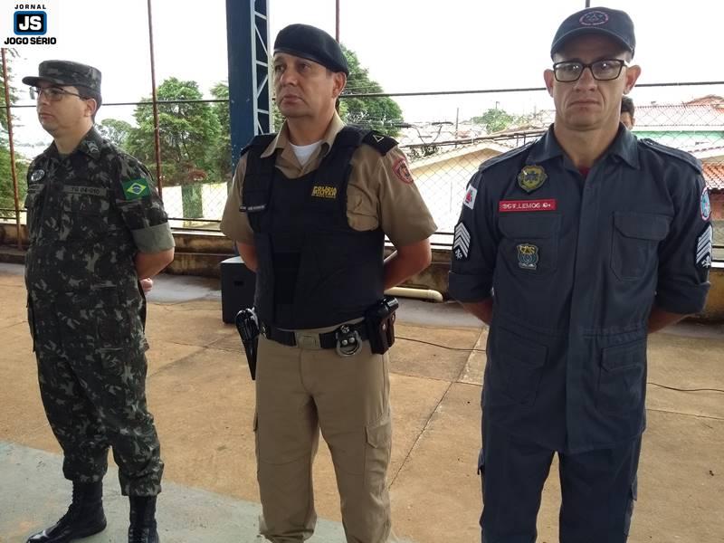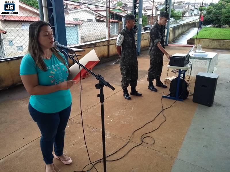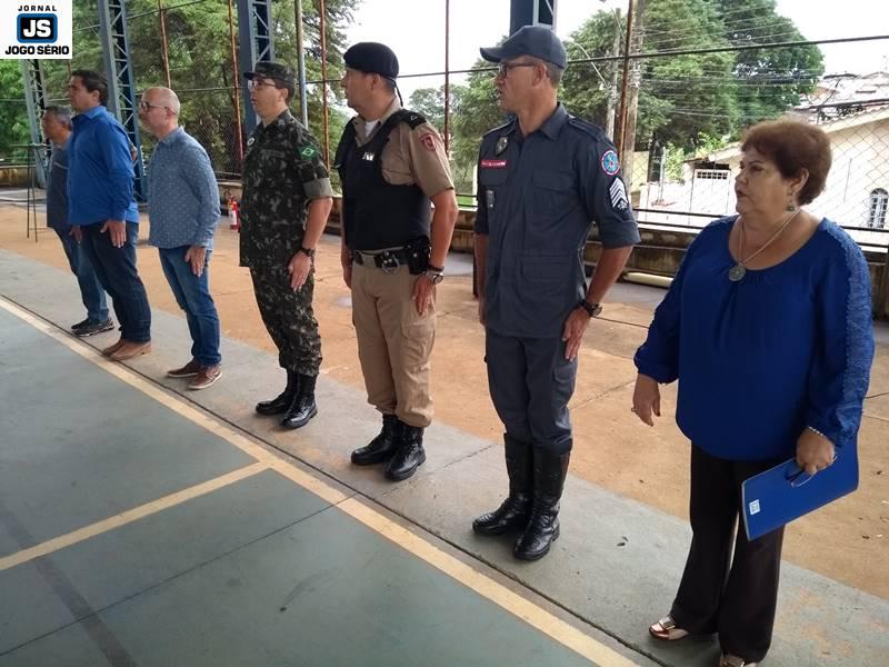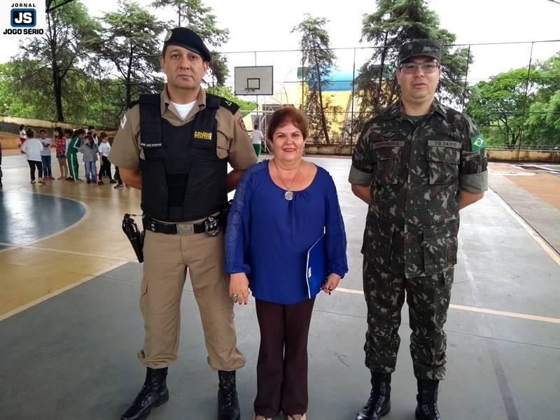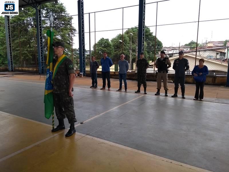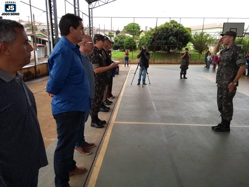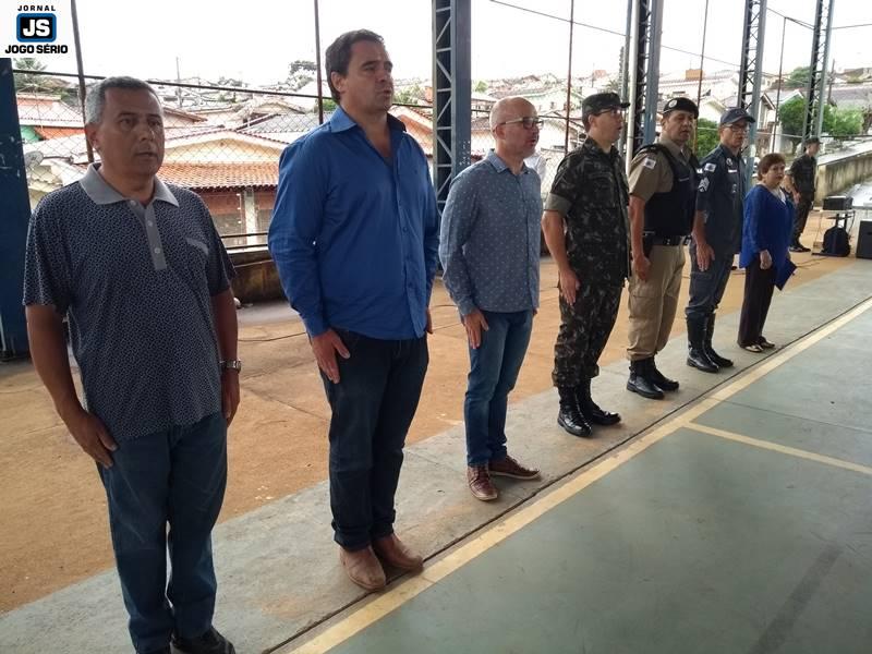 A solenidade foi conduzida pelo chefe de instrução do TG, sargento Marco Antônio Sotoriva, tendo ele comandado a tropa para exibição de hinos (Nacional, da Bandeira). Além dele, ocuparam lugares de destaque no evento o subetenente Robson, da 79ª Cia. PM/MG, o sargento da reserva, Edson Kilian Bitencourt, que é ex-vereador e atualmente ocupa cargo de confiança do governo municipal; o subcomandante do 4º Pelotão do Corpo de Bombeiros, sargento Vicente Elias Lemos, o servidor público municipal Renê Silva, o líder ambiental Luciano Reis, e a diretora da escola, Lindalva Maria de Moraes.