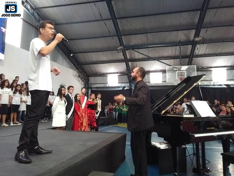 Num cerimonial muito organizado, alunos de diferentes turmas desfilaram com bandeiras de países distintos, quando protagonizaram um espetáculo artístico-musical, com culturas de vários países, cada qual a seu estilo, mas todos destacando a paz, o amor e a união como focos: “Foi muito bom quando todo mundo se juntou e cantou a ‘Canção da Paz’, do conjunto Roupa Nova. Deu até um nó na garganta”, comentou a aluna Beatriz Fernandes Pina Gomes da Silva, do 5º ano, que compôs o imenso coral do “Dia da Família / D. Inácio 2019”. “Faço minhas as palavras do Colégio Dom Inácio: ‘Façamos mais gestos de Paz! Já existem muitas guerras espalhadas pelo mundo! Sejamos do Amor! Sejamos da Paz!’”, disse o professor Talles Fraga, tenor que ensaiou aos alunos junto ao colega de profissão e pianista, professor Leandro Bueno.