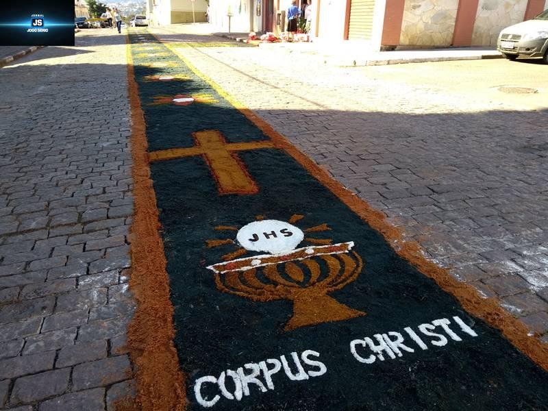 O Corpus Christi, na Igreja Matriz, começou ainda por volta das 5h, quando grupos de pastorais e moradores de ruas próximas à Igreja decoraram as vias com figuras bíblicas e mensagens de devotamento e abnegação: "Uma honra iniciar o dia aqui junto deste pessoal. Estou muito feliz por participar e grato a Jesus", disse o músico Talles Fraga, que conduziu coral artístico nas missas daquele dia especial, mas dedicou-se também à decorar as ruas para a procissão.