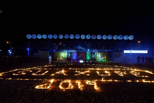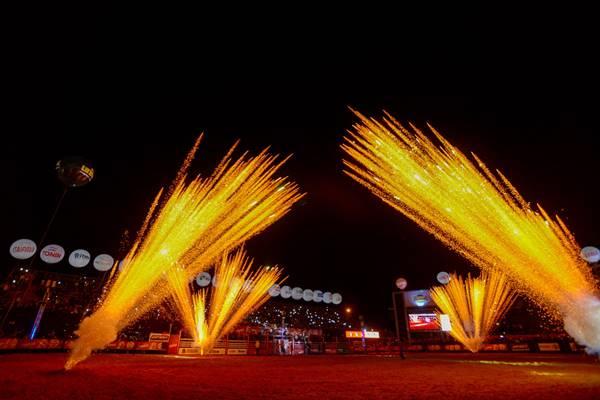 Finalizando as atrações da arena, antes do público entrar para conferir os shows musicais, um piromusical chamou atenção de todos com muitos fogos sincronizados com música.