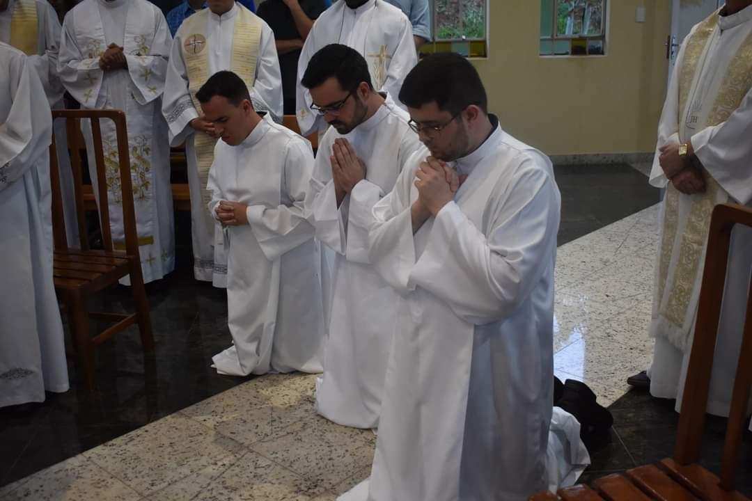 A solenidade foi realizada de manhã, com número limitado de participantes presenciais e transmissão ao vivo pelo canal da Diocese, no youtube. Num ritual emocionante, os três diáconos agora pertencem ao 3º grau da Ordem do Sacramento, pertencente à Igreja Católica. Os diáconos estão encarregados de executar o "serviço do ministério de Deus", deixando de ser um simples leigo e passando a pertencer ao grupo do clero. CLIQUE AQUI e veja a íntegra das referidas ordenações sacerdotais. - VEJA, logo abaixo, informações sobre os novos diáconos da Diocese de Guaxupé.