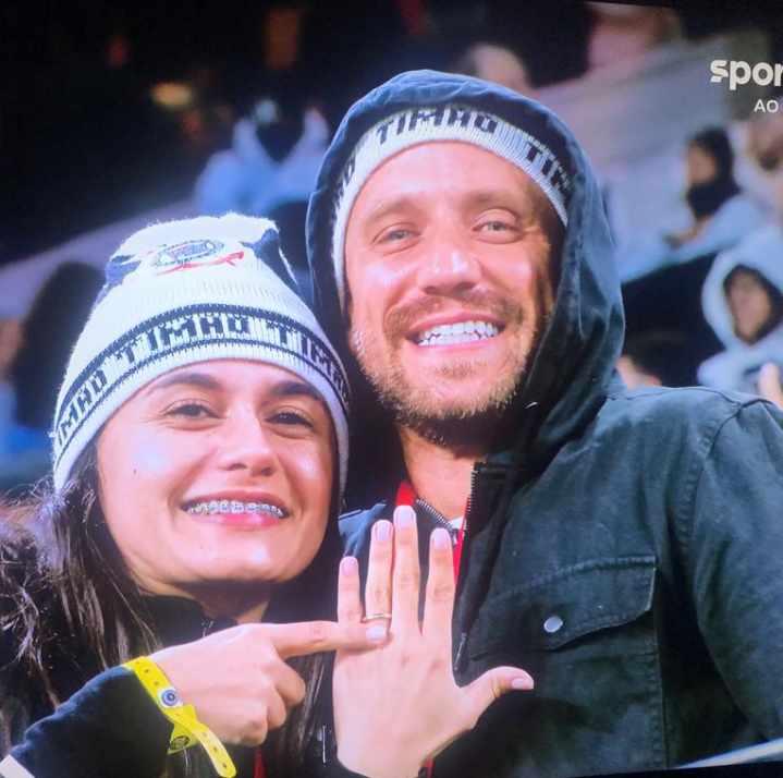 Num clima de romance e amor pelo Corinthians, o casal foi ovacionado pelo público presente e, depois, já na arquibancada, Vítor e Roberta foram filmados pela equipe do SporTV aos beijos. Além da imagem, o narrador Milton Leite comentou: “Nós mostramos, agora há pouco, um casal se beijando e, olha lá: a moça está mostrando que ficou noiva! Foi pedida em casamento hoje pelo rapaz! Então, houve um pedido de casamento aqui, hoje, na Arena Corinthians”.