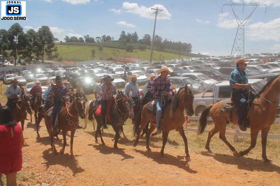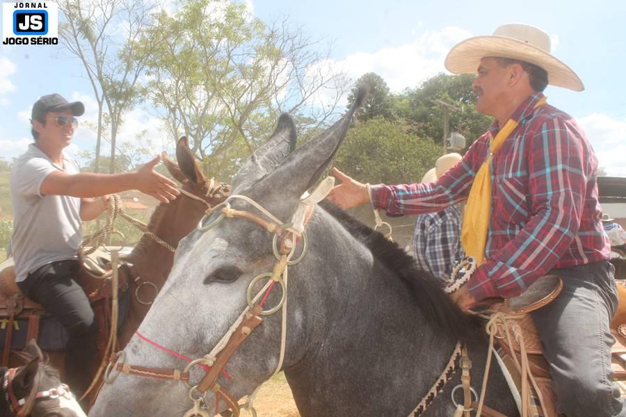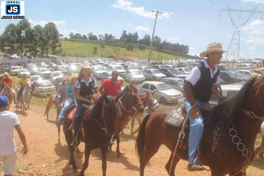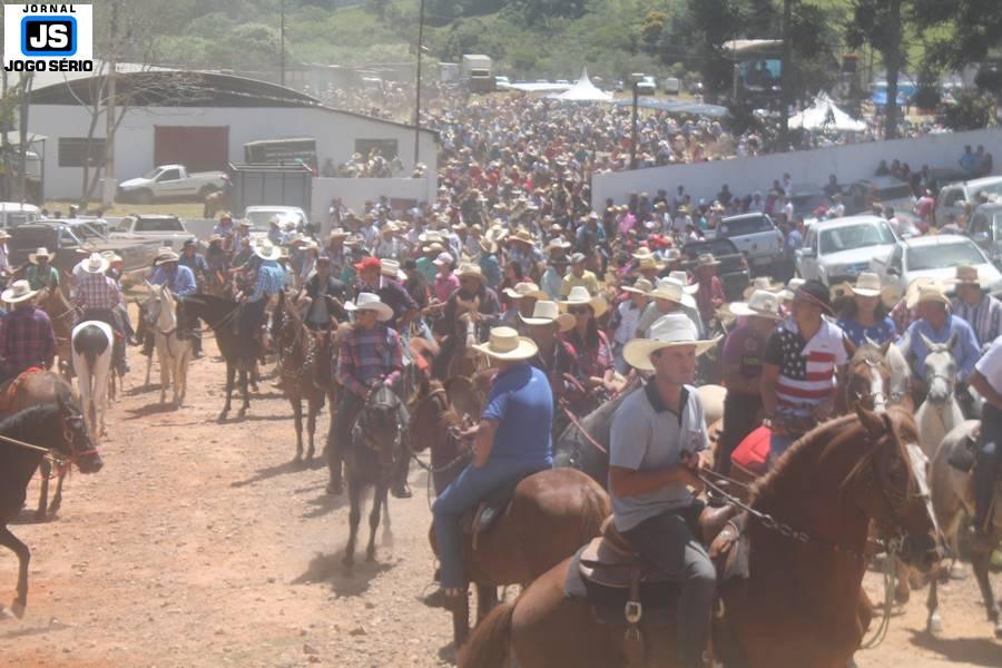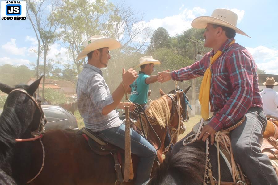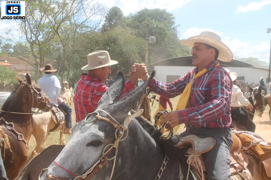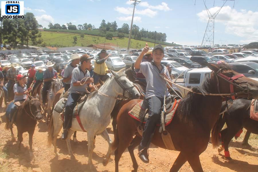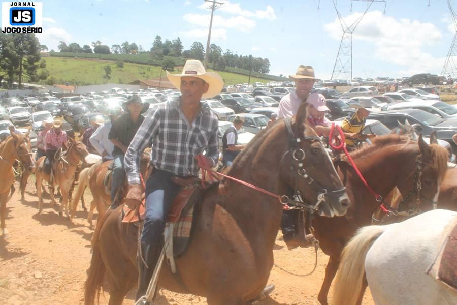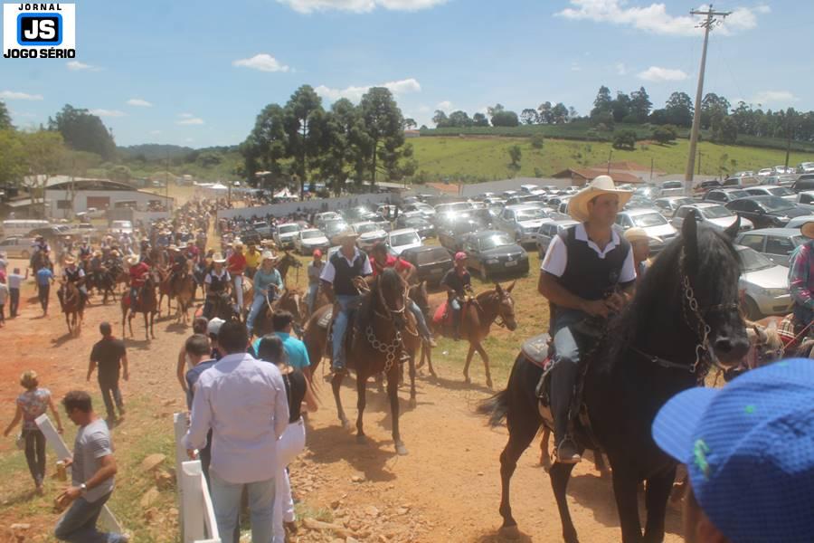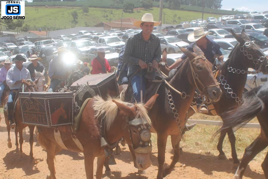 Com o dia ensolarado e a multidão animada, milhares de cavaleiros e amazonas desfilaram pela cidade, numa cavalgada com mais de dois mil e quinhentos animais. Atrativo especial para a cidade, o passeio foi acompanhado de perto por famílias inteiras, as quais apreciavam a referida cultura popular. De volta ao recinto do aniversário, Emidinho Madeira recebeu mais demonstrações carinho, tendo inclusive sido formada uma extensa fila de pessoas interessadas em cumprimentá-lo: "Estamos prestigiando o Emidinho e vendo esta gente bonita nesta festa. O Emidinho, sempre como deputado, é bastante atuante. Há poucos dias, ele fez uma participação nas nossas demandas para o Hospital, liberando uma verba de R$ 215 mil e, tanto eu, como prefeito, quanto a população, está muito agradecida a ele", Adeberto José de Melo (Deco do Estalo), prefeito de Piumhi. "É o maior prazer estar nesta festa do Emidinho, que é muito importante em vários aspectos: como político, pessoa, para a família dele e, enfim, é um homem que está deixando um ótimo exemplo para o Sul de Minas. É um homem humilde, de trabalho, que veio da agricultura e terá um bom futuro na região, se Deus quiser", comentou José Dias de Melo, prefeito de Ipuiuna. "Eu trago aqui o abraço também do governador Fernando Pimentel a nosso amigo, Emidinho Madeira. Não é todo dia que uma pessoa faz 50 anos e, tenho certeza, que desde que ele se entende por gente, em condições de trabalhar, tem feito de sua vida um espaço de serviço ao próximo e é por isto que temos tantas pessoas aqui hoje. E é com este sentimento que trago o abraço do governador e o meu próprio, obviamente", externou o deputado federal Odair Cunha, que desfilou na cavalgada. "Para nós, é um motivo de muita festa e alegria comemorar os 50 anos de Emidinho Madeira. É uma data inesquecível para ele e todos nós, seus companheiros de luta no dia-a-dia. A gente vê a alegria contagiante que sai do sorriso dele e, para nós, também é motivo de muita alegria estar aqui com Nova Resende e a região. A todos, nossas boas vindas!", recepcionou o prefeito de Nova Resende, Celson José de Oliveira.