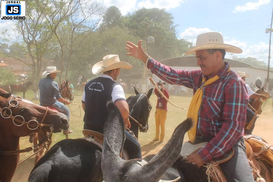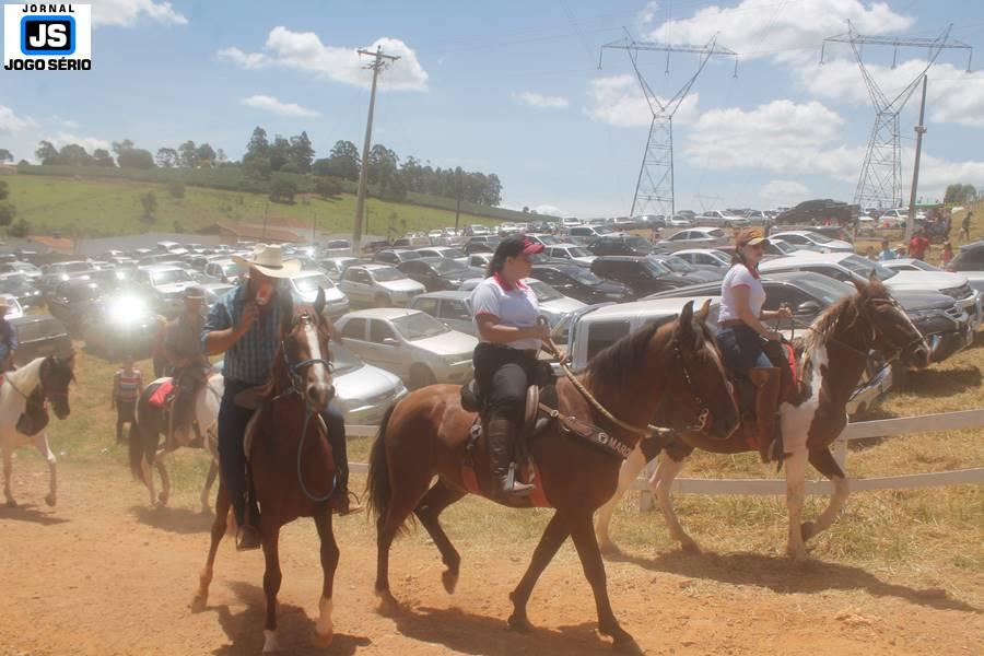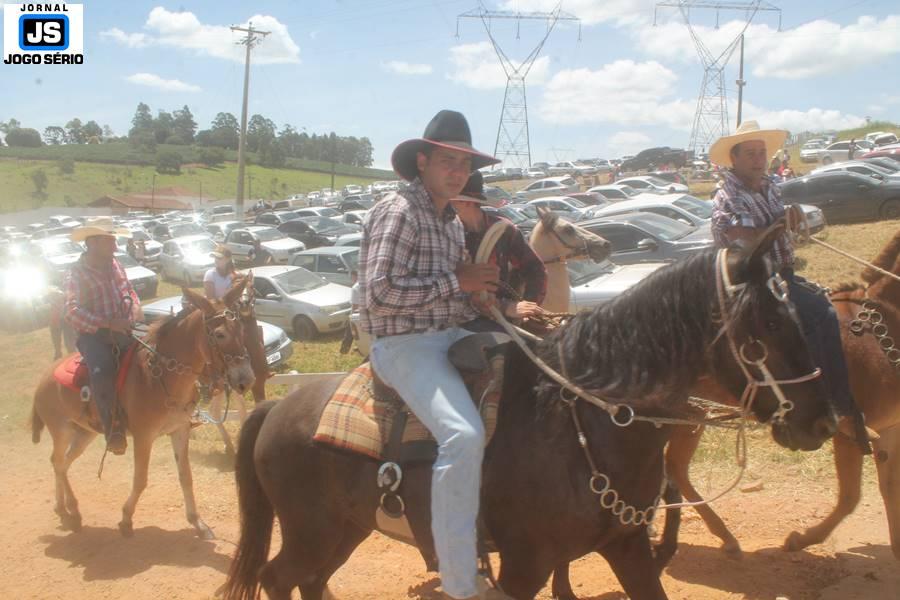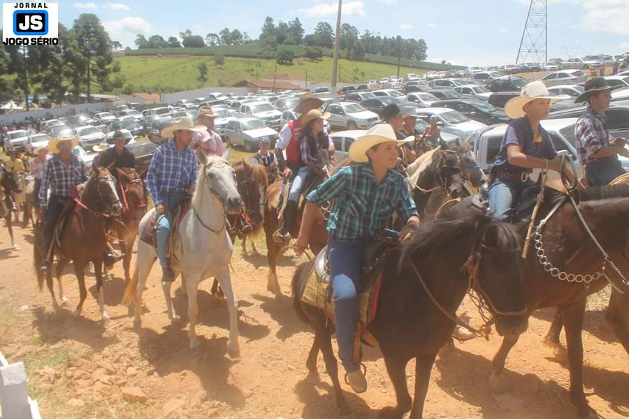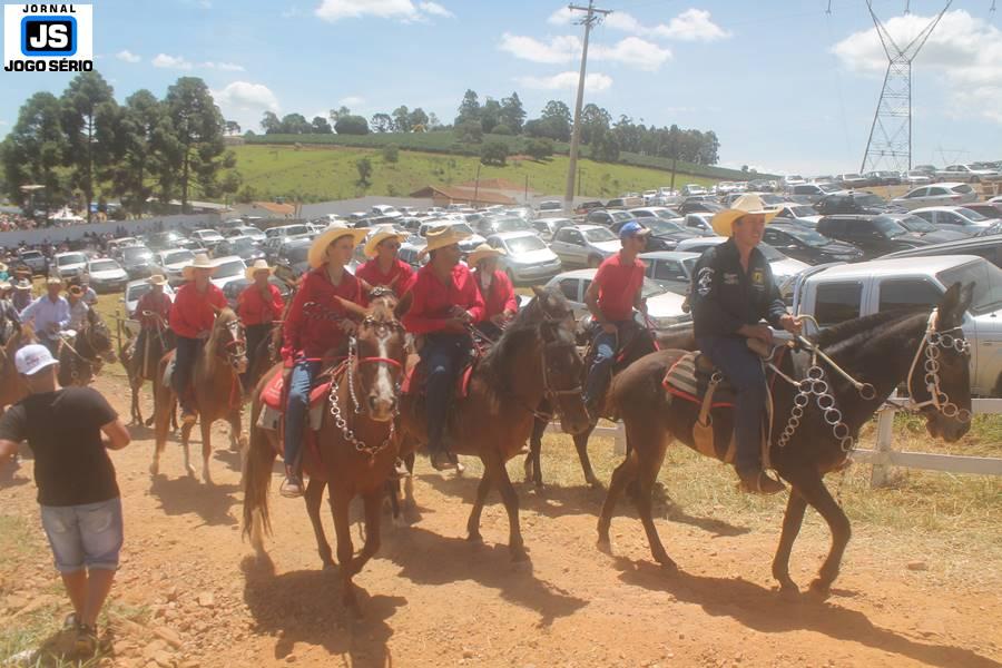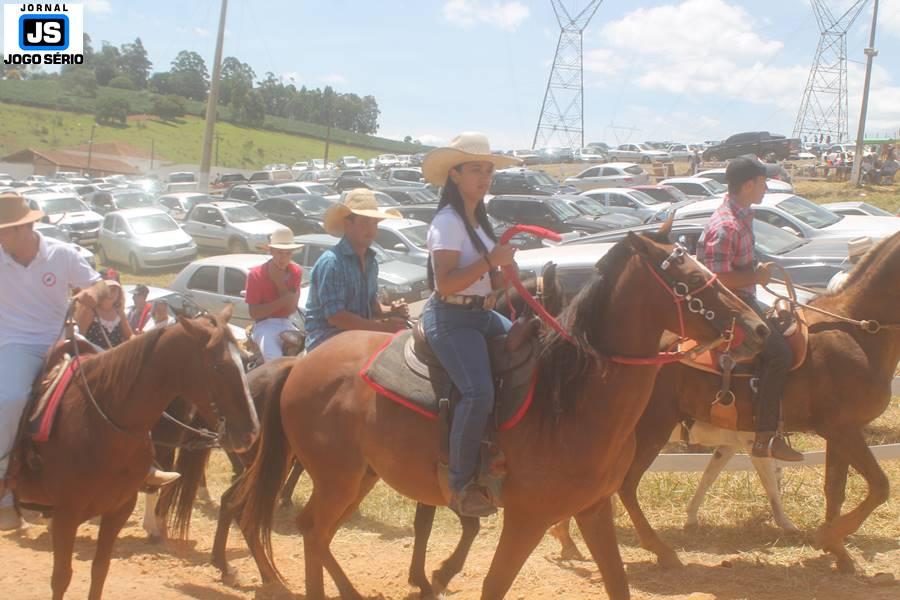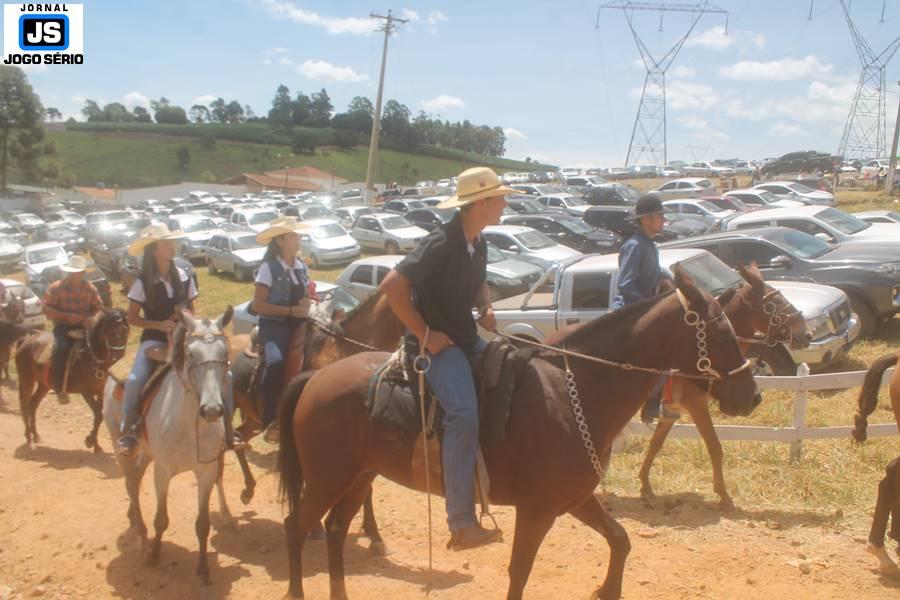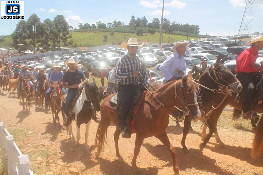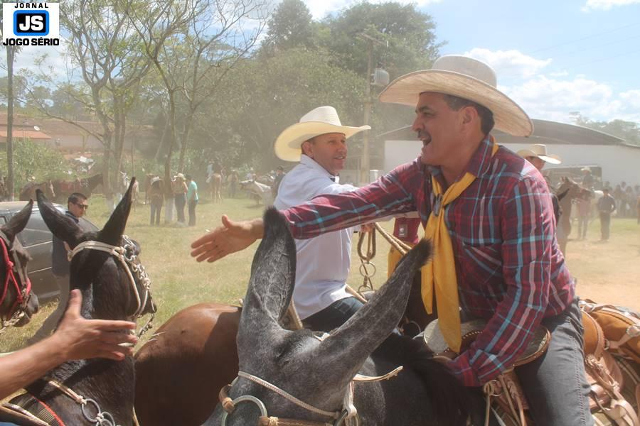 Com o dia ensolarado e a multidão animada, milhares de cavaleiros e amazonas desfilaram pela cidade, numa cavalgada com mais de dois mil e quinhentos animais. Atrativo especial para a cidade, o passeio foi acompanhado de perto por famílias inteiras, as quais apreciavam a referida cultura popular. De volta ao recinto do aniversário, Emidinho Madeira recebeu mais demonstrações carinho, tendo inclusive sido formada uma extensa fila de pessoas interessadas em cumprimentá-lo: "Estamos prestigiando o Emidinho e vendo esta gente bonita nesta festa. O Emidinho, sempre como deputado, é bastante atuante. Há poucos dias, ele fez uma participação nas nossas demandas para o Hospital, liberando uma verba de R$ 215 mil e, tanto eu, como prefeito, quanto a população, está muito agradecida a ele", Adeberto José de Melo (Deco do Estalo), prefeito de Piumhi. "É o maior prazer estar nesta festa do Emidinho, que é muito importante em vários aspectos: como político, pessoa, para a família dele e, enfim, é um homem que está deixando um ótimo exemplo para o Sul de Minas. É um homem humilde, de trabalho, que veio da agricultura e terá um bom futuro na região, se Deus quiser", comentou José Dias de Melo, prefeito de Ipuiuna. "Eu trago aqui o abraço também do governador Fernando Pimentel a nosso amigo, Emidinho Madeira. Não é todo dia que uma pessoa faz 50 anos e, tenho certeza, que desde que ele se entende por gente, em condições de trabalhar, tem feito de sua vida um espaço de serviço ao próximo e é por isto que temos tantas pessoas aqui hoje. E é com este sentimento que trago o abraço do governador e o meu próprio, obviamente", externou o deputado federal Odair Cunha, que desfilou na cavalgada. "Para nós, é um motivo de muita festa e alegria comemorar os 50 anos de Emidinho Madeira. É uma data inesquecível para ele e todos nós, seus companheiros de luta no dia-a-dia. A gente vê a alegria contagiante que sai do sorriso dele e, para nós, também é motivo de muita alegria estar aqui com Nova Resende e a região. A todos, nossas boas vindas!", recepcionou o prefeito de Nova Resende, Celson José de Oliveira.
