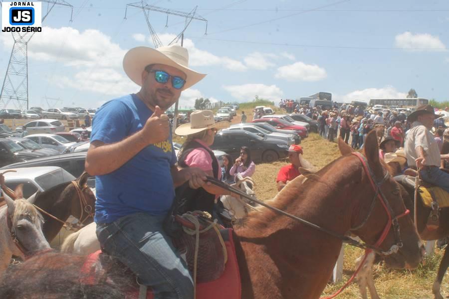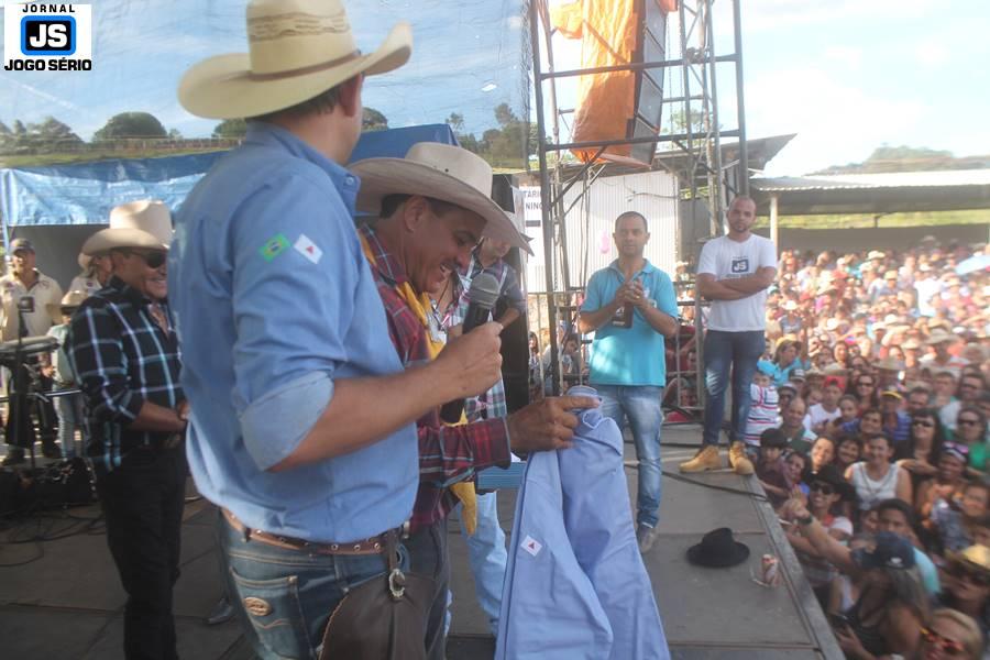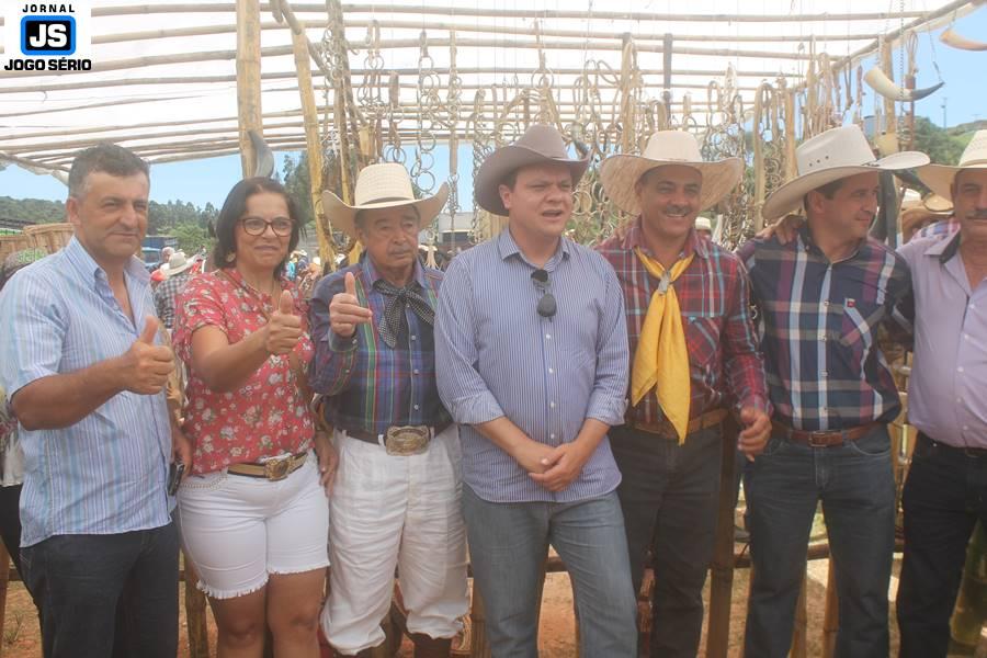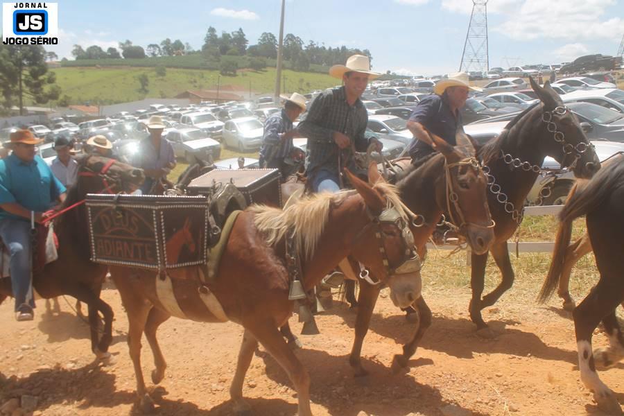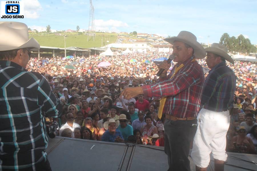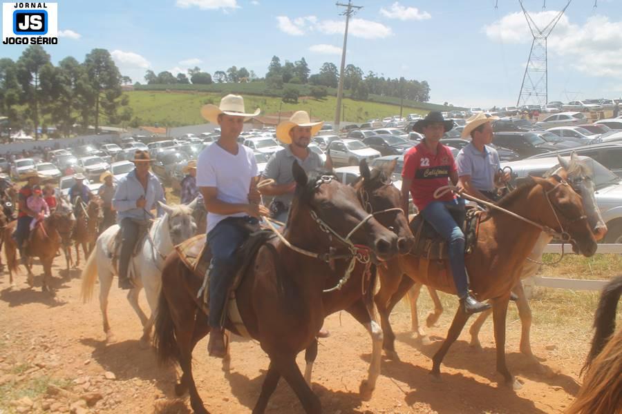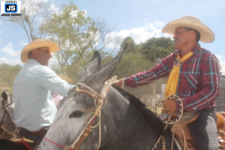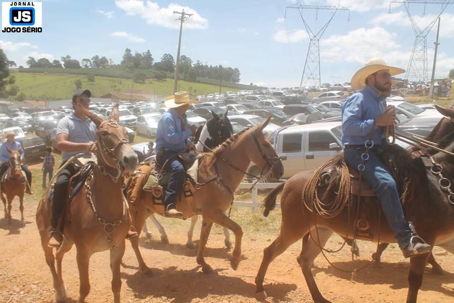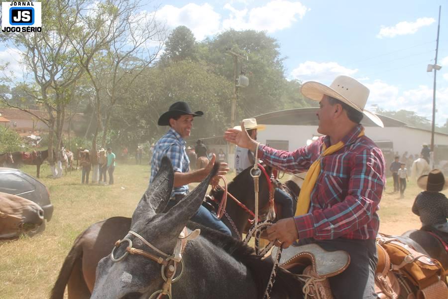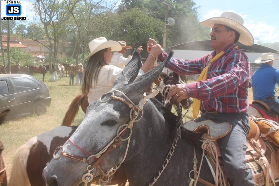 Com o dia ensolarado e a multidão animada, milhares de cavaleiros e amazonas desfilaram pela cidade, numa cavalgada com mais de dois mil e quinhentos animais. Atrativo especial para a cidade, o passeio foi acompanhado de perto por famílias inteiras, as quais apreciavam a referida cultura popular. De volta ao recinto do aniversário, Emidinho Madeira recebeu mais demonstrações carinho, tendo inclusive sido formada uma extensa fila de pessoas interessadas em cumprimentá-lo: "Estamos prestigiando o Emidinho e vendo esta gente bonita nesta festa. O Emidinho, sempre como deputado, é bastante atuante. Há poucos dias, ele fez uma participação nas nossas demandas para o Hospital, liberando uma verba de R$ 215 mil e, tanto eu, como prefeito, quanto a população, está muito agradecida a ele", Adeberto José de Melo (Deco do Estalo), prefeito de Piumhi. "É o maior prazer estar nesta festa do Emidinho, que é muito importante em vários aspectos: como político, pessoa, para a família dele e, enfim, é um homem que está deixando um ótimo exemplo para o Sul de Minas. É um homem humilde, de trabalho, que veio da agricultura e terá um bom futuro na região, se Deus quiser", comentou José Dias de Melo, prefeito de Ipuiuna. "Eu trago aqui o abraço também do governador Fernando Pimentel a nosso amigo, Emidinho Madeira. Não é todo dia que uma pessoa faz 50 anos e, tenho certeza, que desde que ele se entende por gente, em condições de trabalhar, tem feito de sua vida um espaço de serviço ao próximo e é por isto que temos tantas pessoas aqui hoje. E é com este sentimento que trago o abraço do governador e o meu próprio, obviamente", externou o deputado federal Odair Cunha, que desfilou na cavalgada. "Para nós, é um motivo de muita festa e alegria comemorar os 50 anos de Emidinho Madeira. É uma data inesquecível para ele e todos nós, seus companheiros de luta no dia-a-dia. A gente vê a alegria contagiante que sai do sorriso dele e, para nós, também é motivo de muita alegria estar aqui com Nova Resende e a região. A todos, nossas boas vindas!", recepcionou o prefeito de Nova Resende, Celson José de Oliveira.