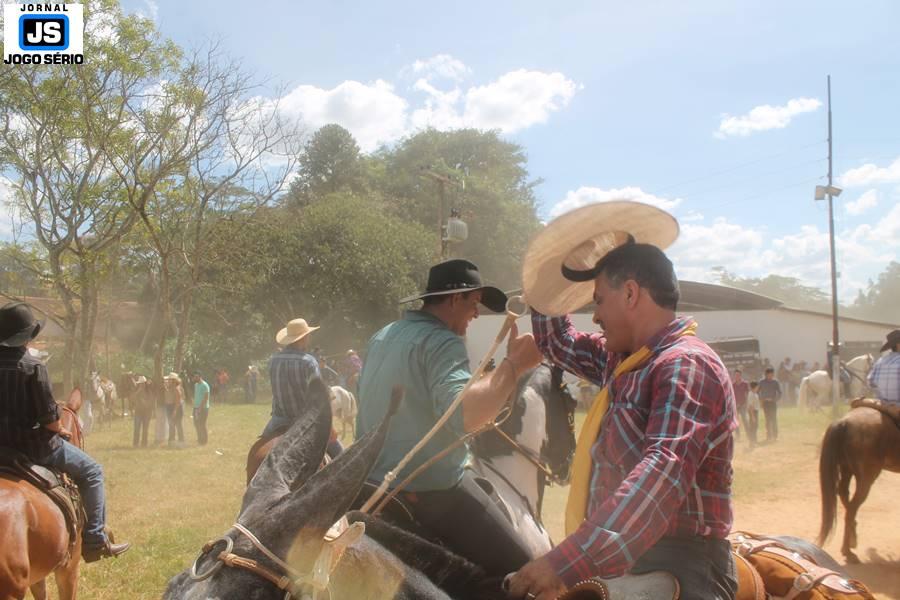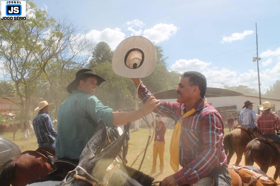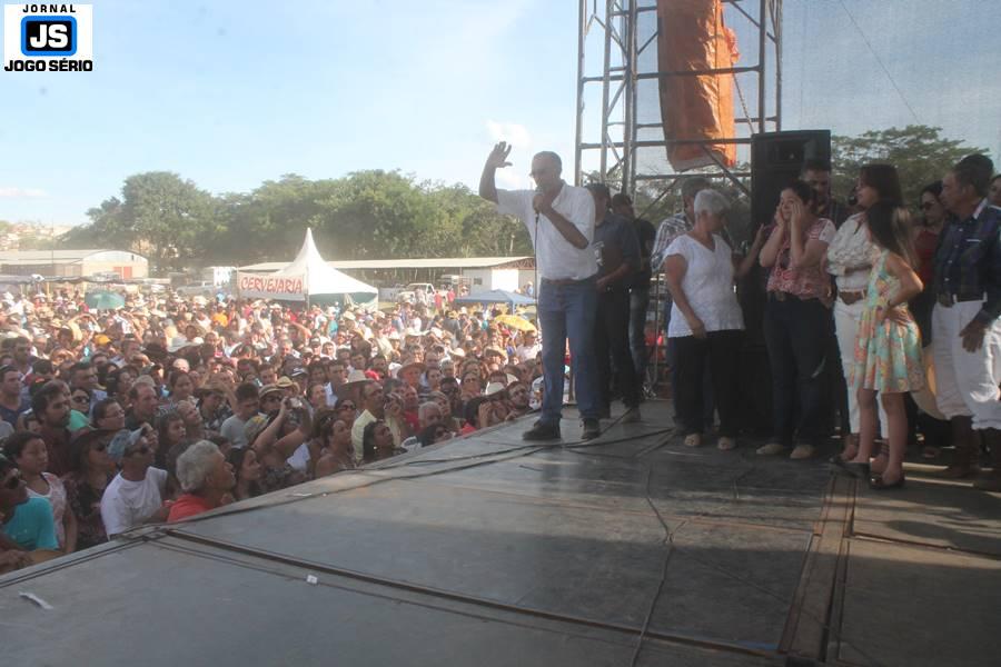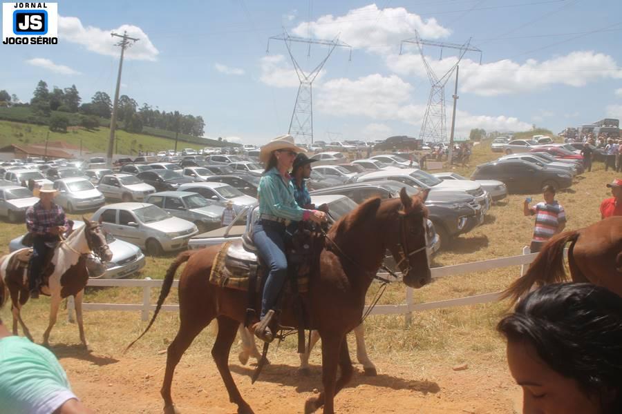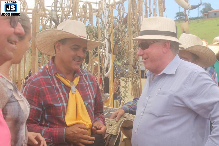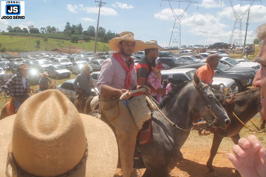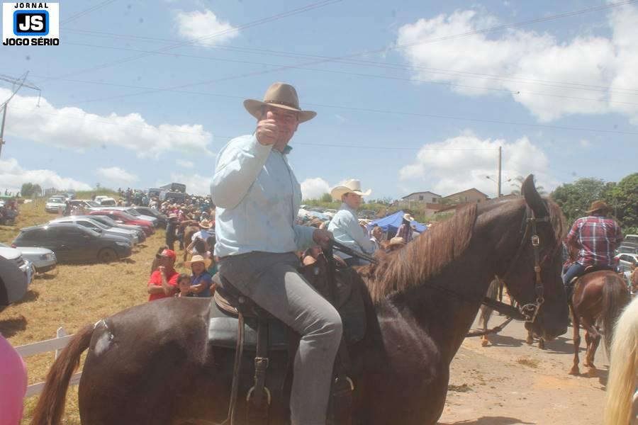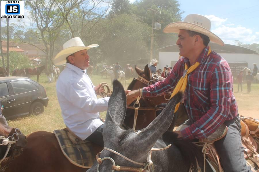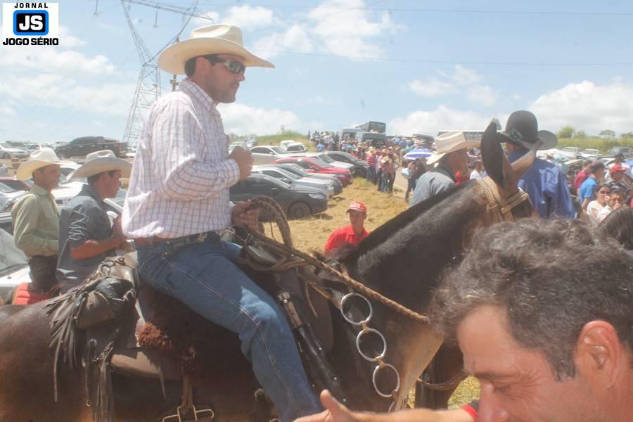 Com o dia ensolarado e a multidão animada, milhares de cavaleiros e amazonas desfilaram pela cidade, numa cavalgada com mais de dois mil e quinhentos animais. Atrativo especial para a cidade, o passeio foi acompanhado de perto por famílias inteiras, as quais apreciavam a referida cultura popular. De volta ao recinto do aniversário, Emidinho Madeira recebeu mais demonstrações carinho, tendo inclusive sido formada uma extensa fila de pessoas interessadas em cumprimentá-lo: "Estamos prestigiando o Emidinho e vendo esta gente bonita nesta festa. O Emidinho, sempre como deputado, é bastante atuante. Há poucos dias, ele fez uma participação nas nossas demandas para o Hospital, liberando uma verba de R$ 215 mil e, tanto eu, como prefeito, quanto a população, está muito agradecida a ele", Adeberto José de Melo (Deco do Estalo), prefeito de Piumhi. "É o maior prazer estar nesta festa do Emidinho, que é muito importante em vários aspectos: como político, pessoa, para a família dele e, enfim, é um homem que está deixando um ótimo exemplo para o Sul de Minas. É um homem humilde, de trabalho, que veio da agricultura e terá um bom futuro na região, se Deus quiser", comentou José Dias de Melo, prefeito de Ipuiuna. "Eu trago aqui o abraço também do governador Fernando Pimentel a nosso amigo, Emidinho Madeira. Não é todo dia que uma pessoa faz 50 anos e, tenho certeza, que desde que ele se entende por gente, em condições de trabalhar, tem feito de sua vida um espaço de serviço ao próximo e é por isto que temos tantas pessoas aqui hoje. E é com este sentimento que trago o abraço do governador e o meu próprio, obviamente", externou o deputado federal Odair Cunha, que desfilou na cavalgada. "Para nós, é um motivo de muita festa e alegria comemorar os 50 anos de Emidinho Madeira. É uma data inesquecível para ele e todos nós, seus companheiros de luta no dia-a-dia. A gente vê a alegria contagiante que sai do sorriso dele e, para nós, também é motivo de muita alegria estar aqui com Nova Resende e a região. A todos, nossas boas vindas!", recepcionou o prefeito de Nova Resende, Celson José de Oliveira.